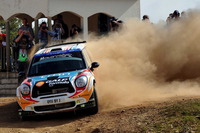 В Португалии дебютировали MINI John Cooper Works, пусть пока только в спецификации S2000. Однако это новейшая версия, которая от машин WRC отличаются только отсутствием аэродинамического обвеса, обычными, а не облегченными окнами и более тяжелым маховиком. Собственно это и все! Новая генерация S2000 имеет тоже самое шасси и тот же самый 1,6-литровый турбодвигатель, что и автомобили WRC – это и была главная задумка нового технического регламента и вот ее плоды. Практически без предварительных тестов, сев в новый для себя автомобиль и придерживаясь исключительно перестраховочного режима, Арминдо Арахо в пятницу не просто постоянно был в топ-10, но и показал 7-е и 8-е времена, и по итогам дня шел на 7-м месте!