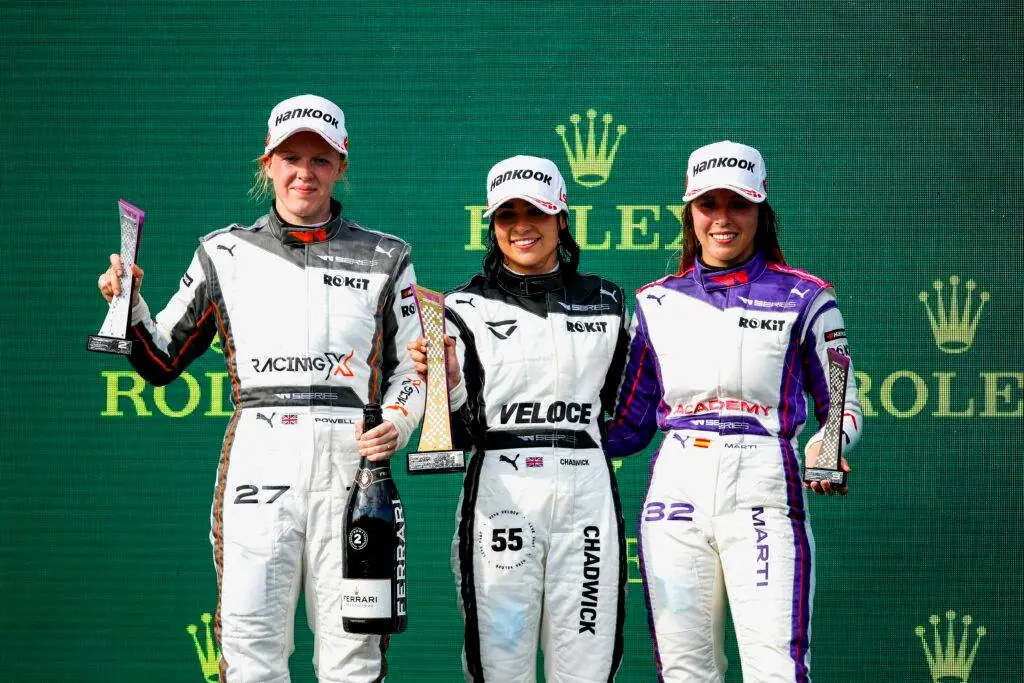 А ось решта, і зокрема претендентки на місця в топ-3, після половини сезону відстають майже вдвічі за здобутими балами. І кожного вік-енду нова гонщиця досягає подіуму. Цього разу перший успіх у кар’єрі знайшов представницю Академії Серії W – Нерею Марті. Іспанка від етапу до етапу покращує гоночний темп, а в Угорщині здобула для себе перший фініш на подіумі. У чемпіонаті вона також тепер третя.