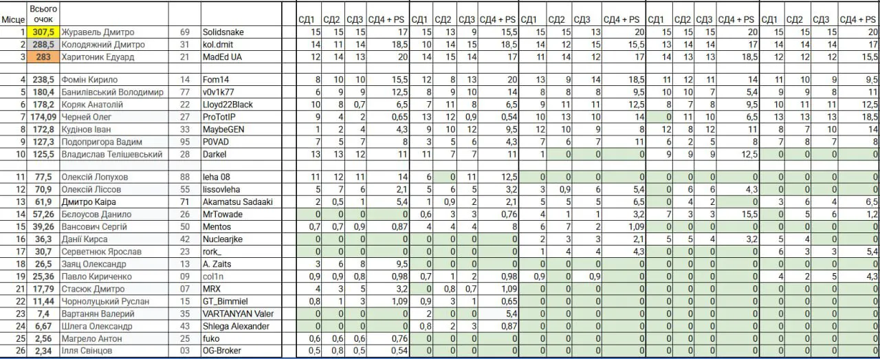 Оновлені таблиці результатів також опубліковані в офіційних каналах КЦА ФАУ.