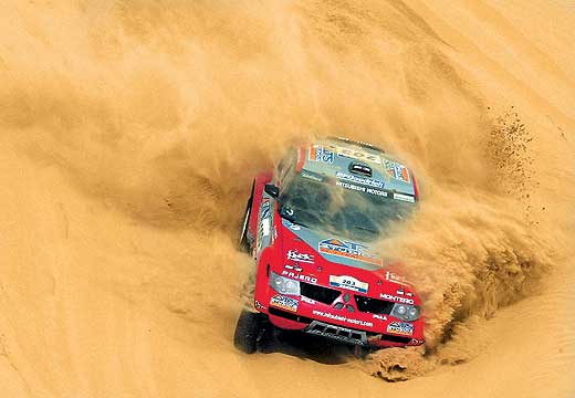 И все же мало кто сомневался в победе Mitsubishi. Ведь в активе этой команды, помимо практически неограниченного бюджета и непрерывного 20-летнего стажа, было «сверхоружие» – Pajero Evo, самый успешный внедорожник в истории рейдов. Более того, Мацуока, Петерансель и Бьязион – ударная сила «трех бриллиантов» – оседлали новейшие Evo II (4 цил., 4,0 л, 270 л. с., 360 Нм, 1825 кг, 230 км/ч), уже выигравшие «маленький дакар», Desert Challenge, прошедший в октябре прошлого года.