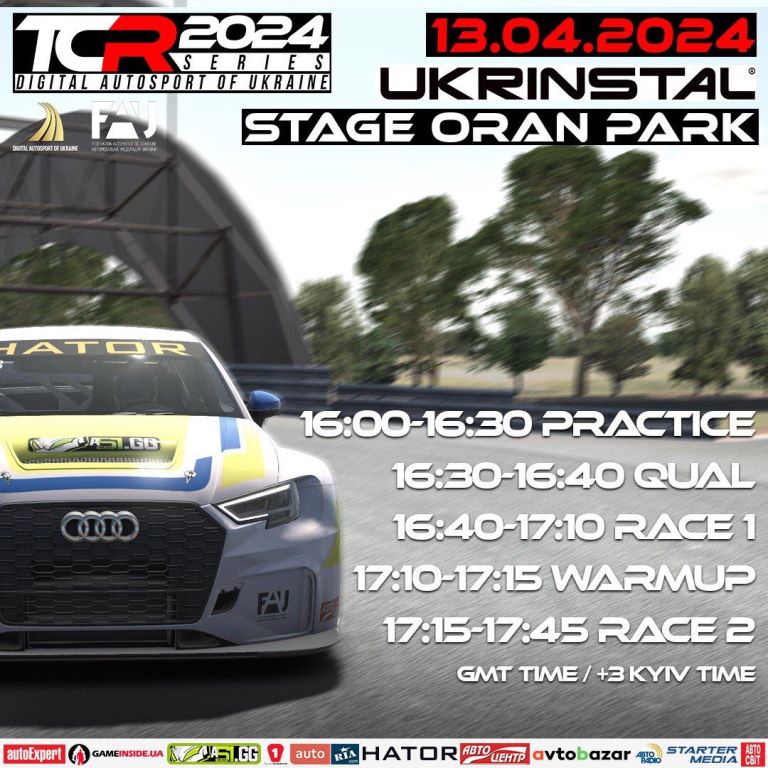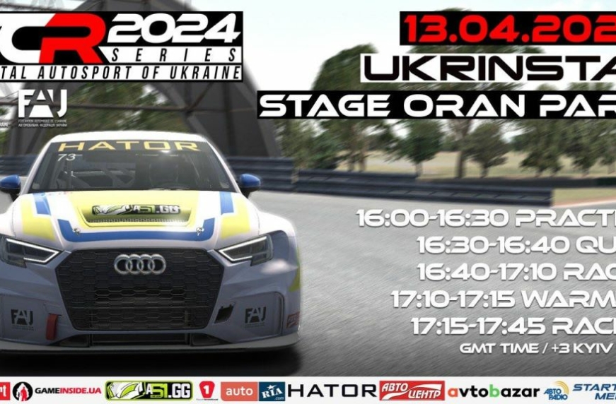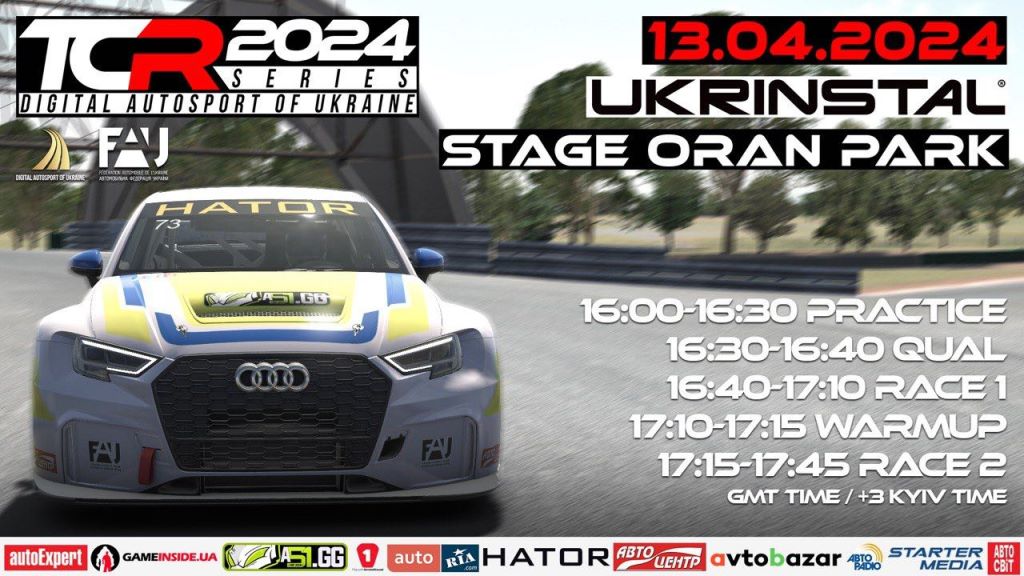 13 квітня 2024 року Комісія Цифрового Автоспорту стартує з новою Серією віртуальних перегонів і запрошує на ПЕРШИЙ етап UKRINSTAL Stage Oran Park Міжнародної Серії змагань на автомобілях класу TCR під назвою DIGITAL AUTOSPORT OF UKRAINE: TCR Series-2024 (DAU TCR Series) на симуляторі iRacing.