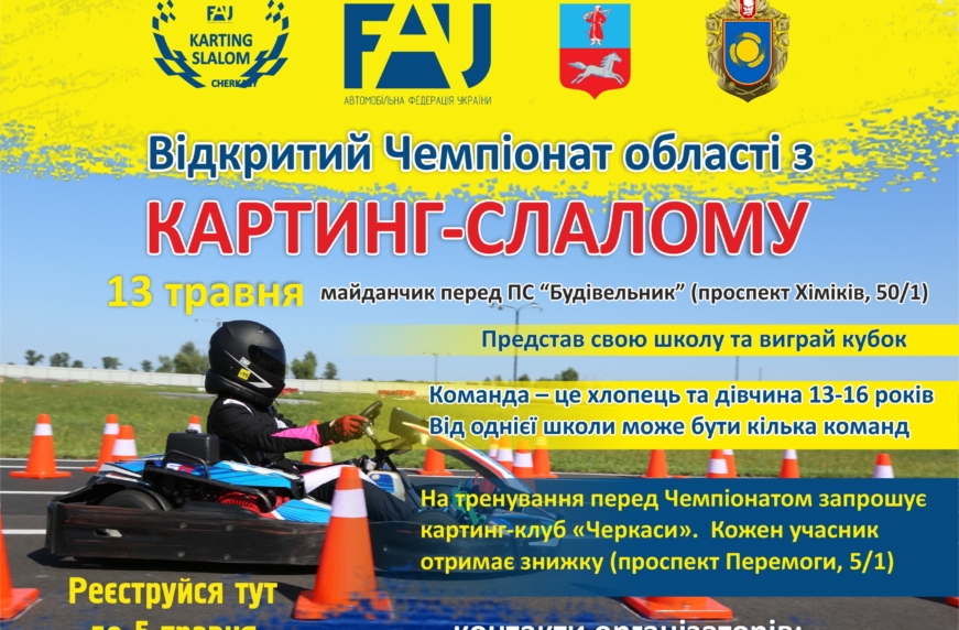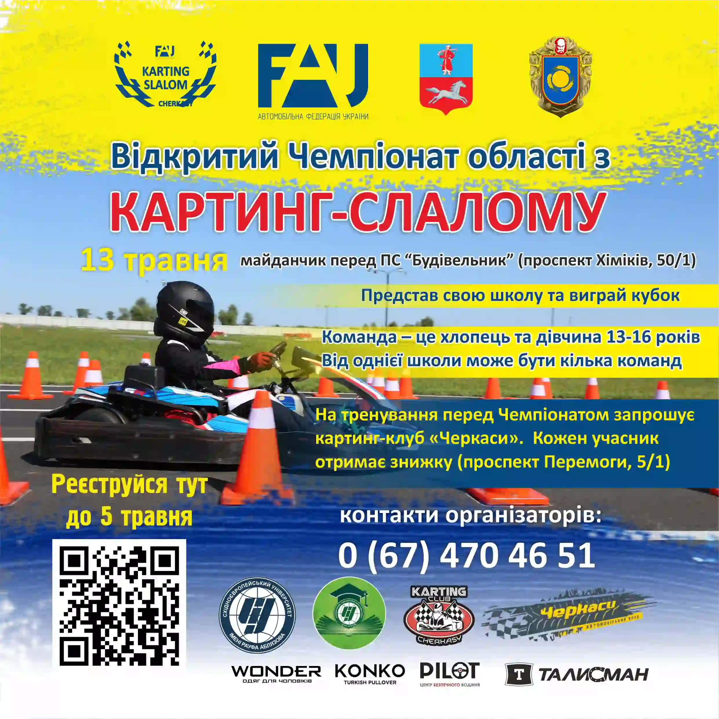 Відкритий Чемпіонат області з картинг-слалому проведуть у Черкасах, його учасниками стануть діти віком 13-16 років. Це перша автоспортивна подія на Черкащині з моменту повномасштабної війни.