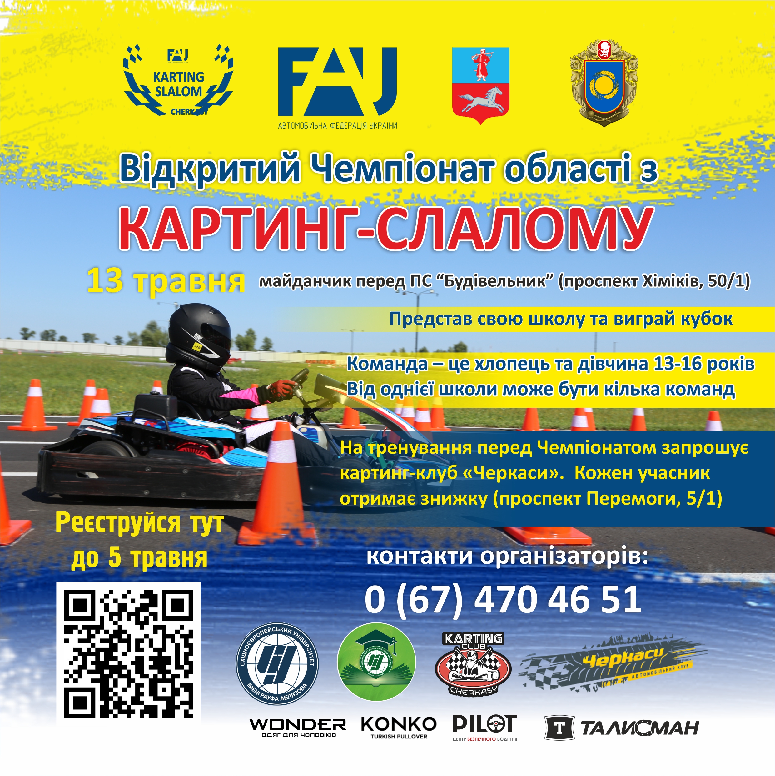 – Зараз в Україні не проводяться ані Чемпіонати, ані Кубки з автоспорту. Та я впевнений, що після Перемоги Автомобільна федерація України зможе їх відновити. Поки ж ті автоспортсмени, які мешкають у відносно безпечних містах, зосередилися на волонтерстві та одночасно пробують хоча б час від часу організовувати невеликі змагання. У Черкасах ми плануємо провести Чемпіонат для підлітків із картинг-слалому, – говорить керівник Автомобільного клубу «Черкаси» Андрій Яроменко. – Це наша спільна ініціатива разом зі Східноєвропейським університетом ім Р. Аблязова, Фаховим коледжом СУРА, картинг-клубом «Черкаси» за підтримки Департаменту освіти та гуманітарної політики міської ради й Управління сім‘ї, молоді та спорту Черкаської ОДА.