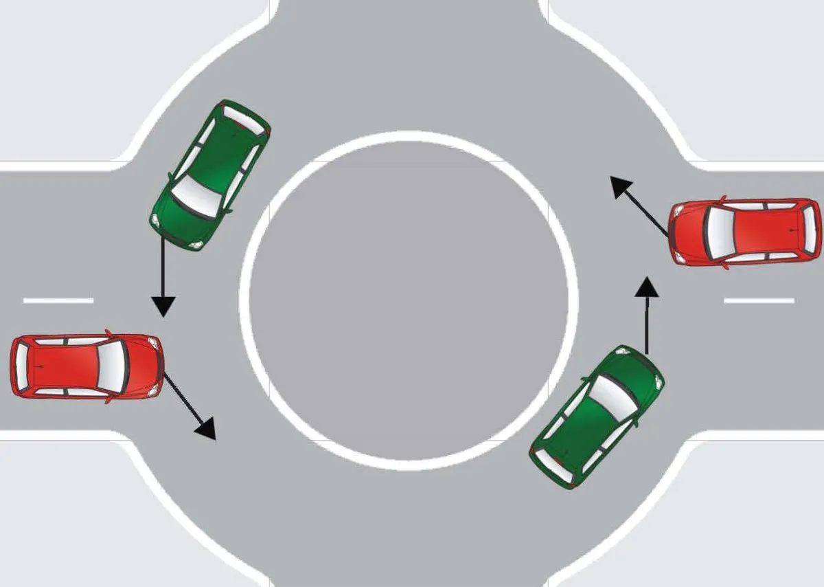 Іншими словами, якщо автомобіль рухається по колу без знаків пріоритету або світлофора, то він поступається дорогу тим транспортним засобам, які їдуть по праву руку до нього. А той, хто в’їжджає на перехрестя без перешкоди праворуч, має пріоритет руху. На нашому малюнку першим проїжджає червоний автомобіль.