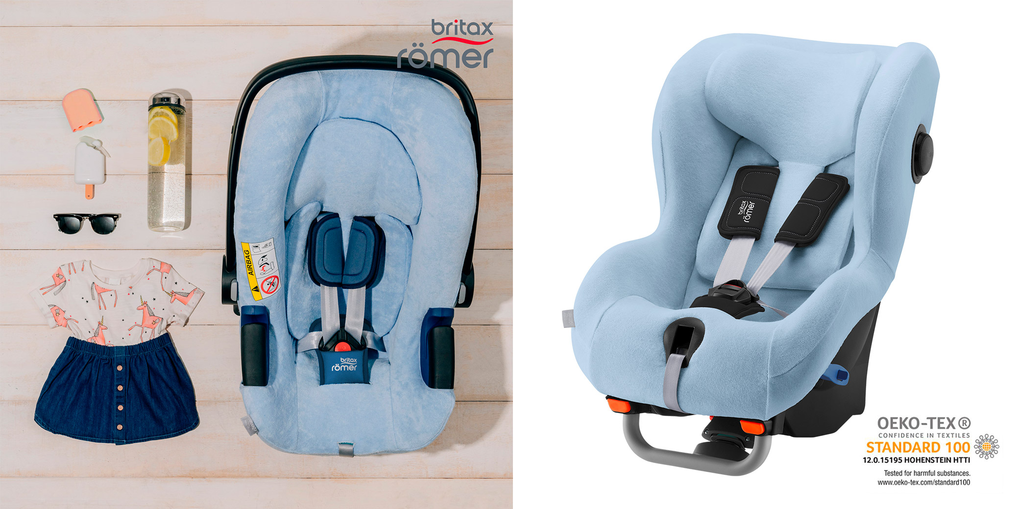 Влітку повітря в машині нагрівається неймовірними темпами, тому як ніколи актуальними стають натуральні бавовняні тканини, які не прилипають до шкіри. Спеціально для жарких днів Britax Romer створив літні чохли, які поглинають тепло і вбирають піт.