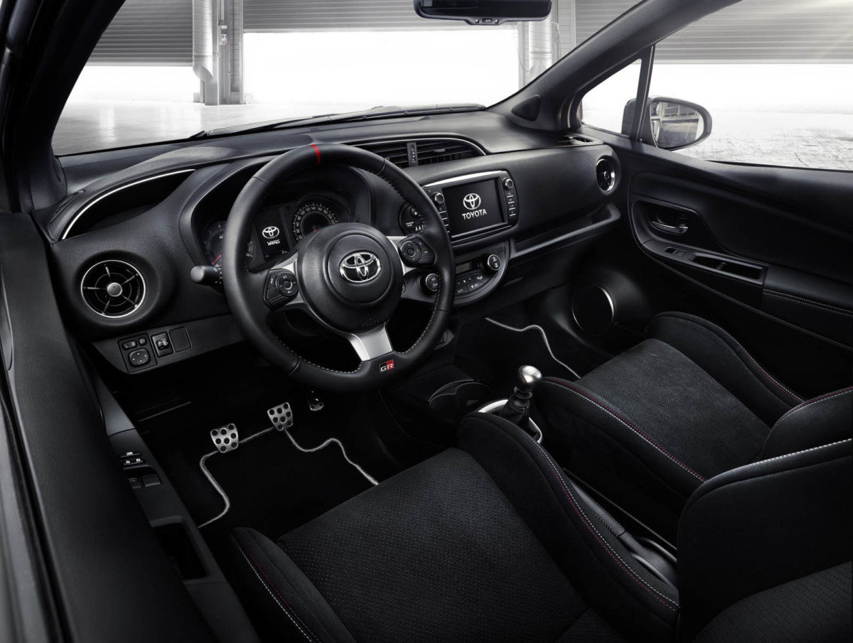 «Гарячий» хетчбек Тойота агрегатується тільки механічною КПП і має диференціал підвищеного тертя. Спереду – розтяжки між “чашками” і вентильовані 4-поршневі гальмівні диски. Плюс до цього укорочені пружини і особливі амортизатори, створені спільно з компанією Sachs.
