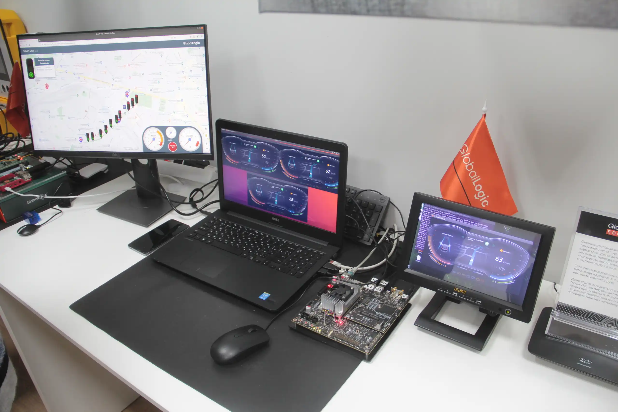 В рамках торжественного открытия компания GlobalLogic также презентовала свои последние разработки и подробнее рассказала про embedded-системы. Нам автомобилистам, эта специализированная терминология может быть незнакома, многие из нас очень часто используют в своем автомобиле устройства, работающие с помощью таких систем. И автомобильная отрасль одна из многих, где применяются embedded-системы. Они лежат в основе современных приборов от фитнес-браслетов и Wi-Fi-роутеров до специализированного медицинского оборудования. Сложность и специфика решений заключается в том, что embedded-устройства, как правило, не имеют собственной операционной системы (или имеют специфическую ОС) и их программное обеспечение тесно интегрировано с “железом” устройства, на котором оно работает.