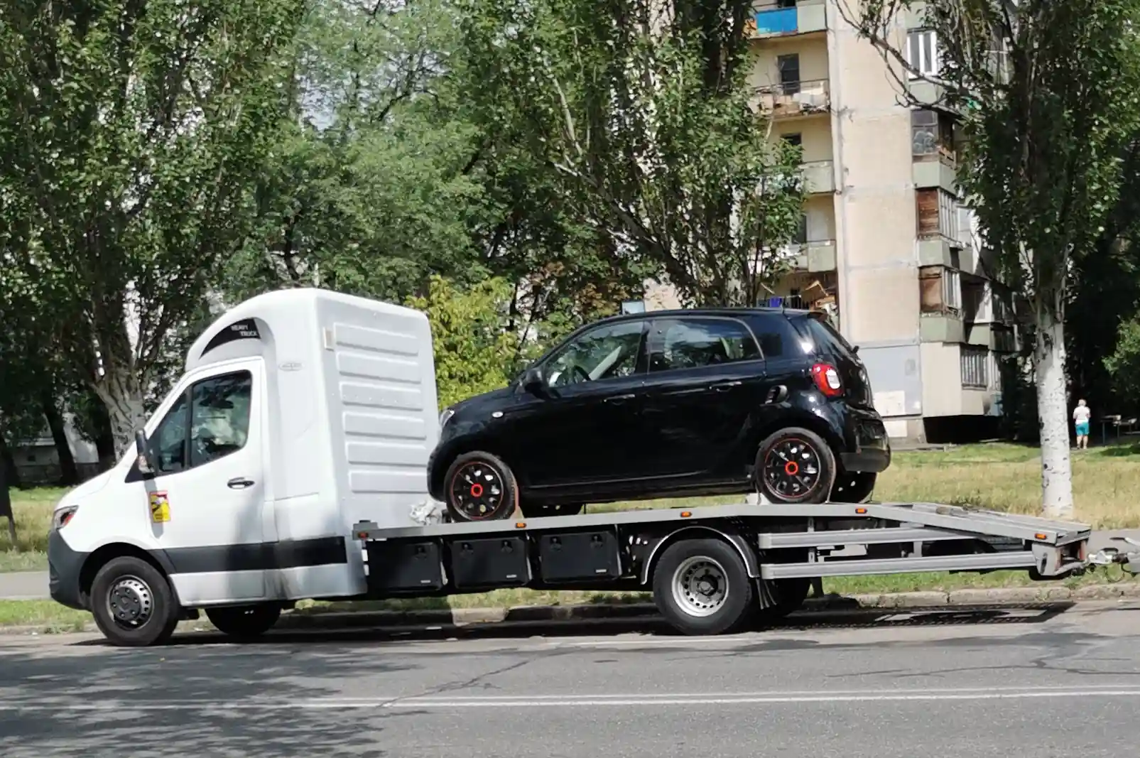 А перевозив він два доволі свіжих автомобілі Smart Forfour — один на собі, а інший на причепі. Такі "народні" Mercedes-Benz нечасті гості у нас, але безмитне ввезення зробило свою справу.