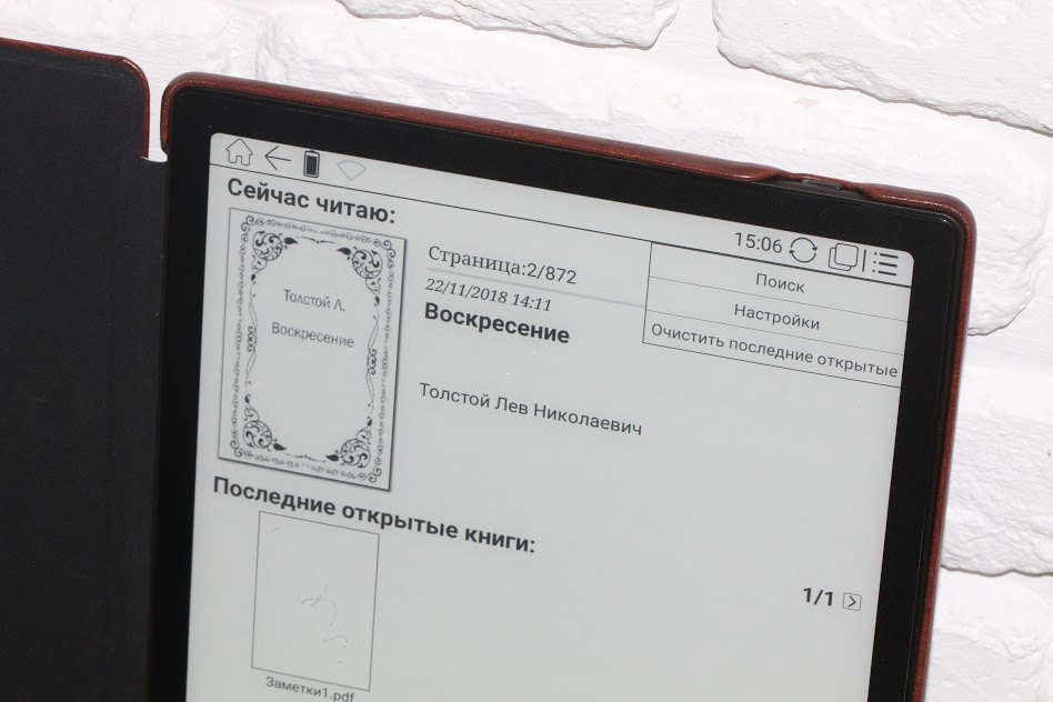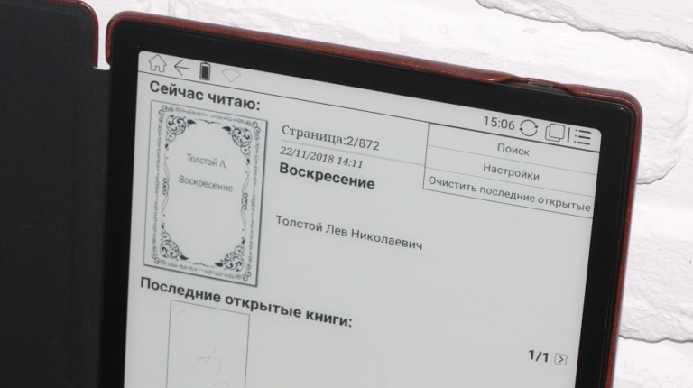 Вес устройства для руки также комфортен – только 325 грамм. «Секрет» легкости в использованном материале корпуса ридера – применен пластик. Поверх дисплея, кстати говоря, также пластик. Возможности последнего здесь лично мне понравились даже больше чем стекла – за тестовый период ни одной царапинки или потертости. Кстати, тестовые три недели ридер чаще ездил без чехла, чем в нем.