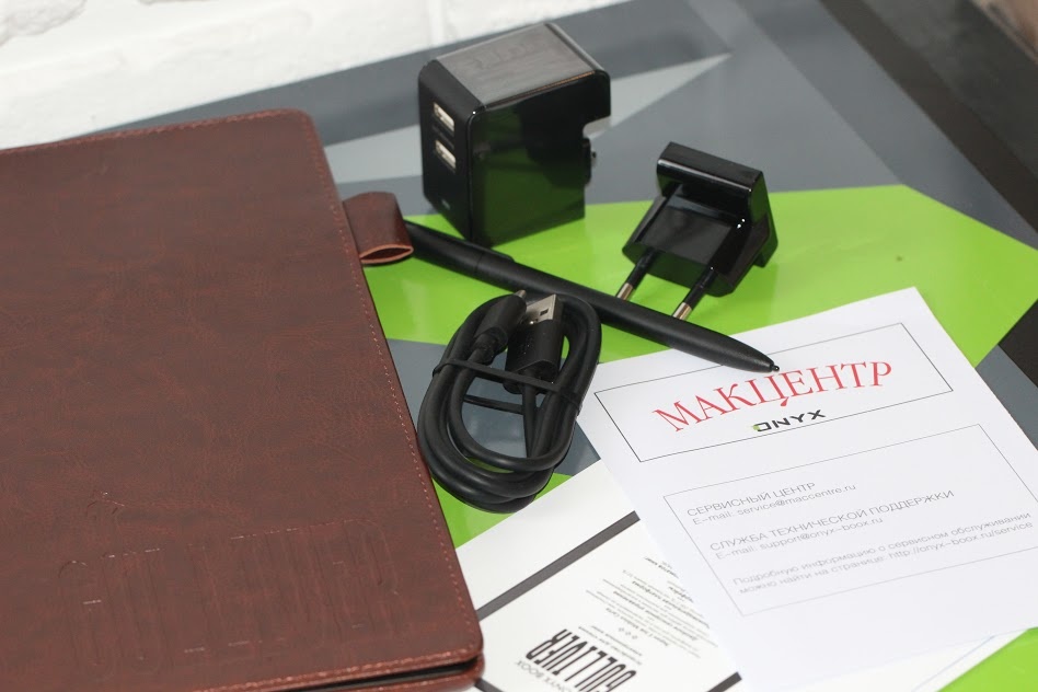 Кроме самого Gulliver-а, который изначально помещен в «умный» чехол, внутри коробки адаптер зарядного устройства с переходником, кабель USB Type-C и различная документация. Да, Gulliver поддерживает быструю зарядку, что для ридеров пока еще также в диковинку.