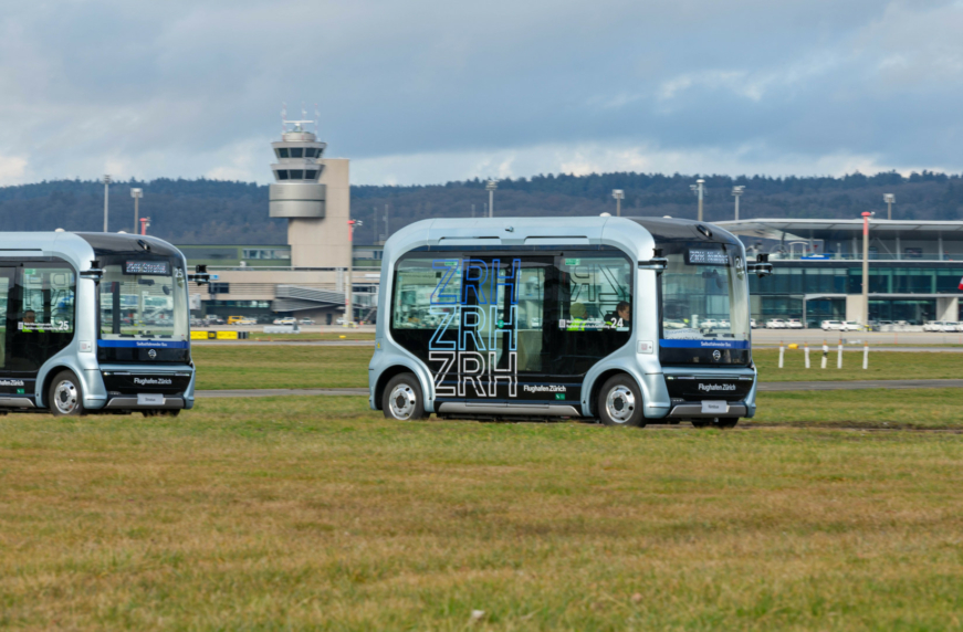 В даний час в аеропорту Цюріха проходять випробування безпілотні шатли, які перевозять співробітників між головним офісом біля гейта 101 та виробничою площадкою, що поруч з гейтом 130. Стартувавши ще в березні, на сьогоднішній день вже досягнуто третього рівня автоматизації, при якому водій знаходиться в кабіні лише для контролю автономного керування. За цей час було проведено велику підготовчу роботу за участю партнерів з WeRide – впроваджено нову IT-інфраструктуру, виконано сотні запусків.
