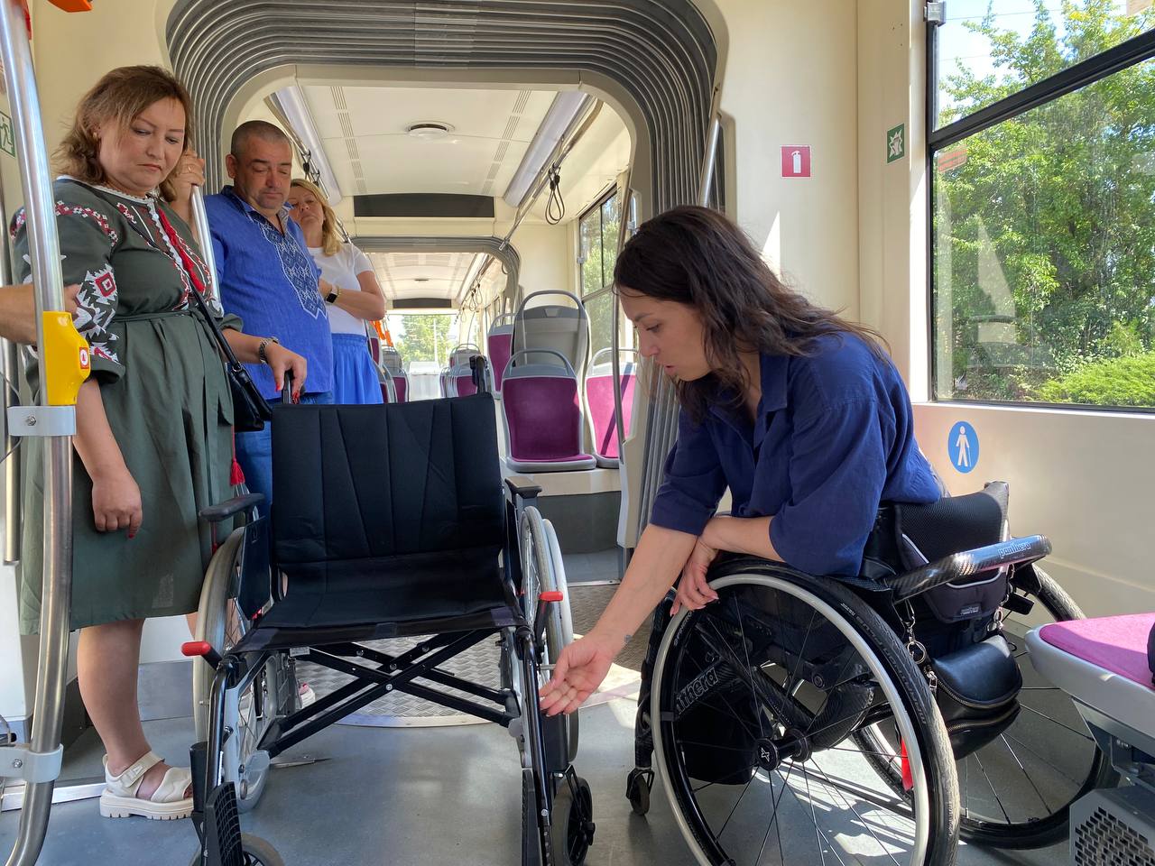 На навчаннях учасники відпрацьовують алгоритми надання допомоги під час посадки та висадки маломобільних пасажирів, удосконалюють навички комунікації. Також знайомляться з бар’єрами, які щодня долають у транспорті люди з інвалідністю.