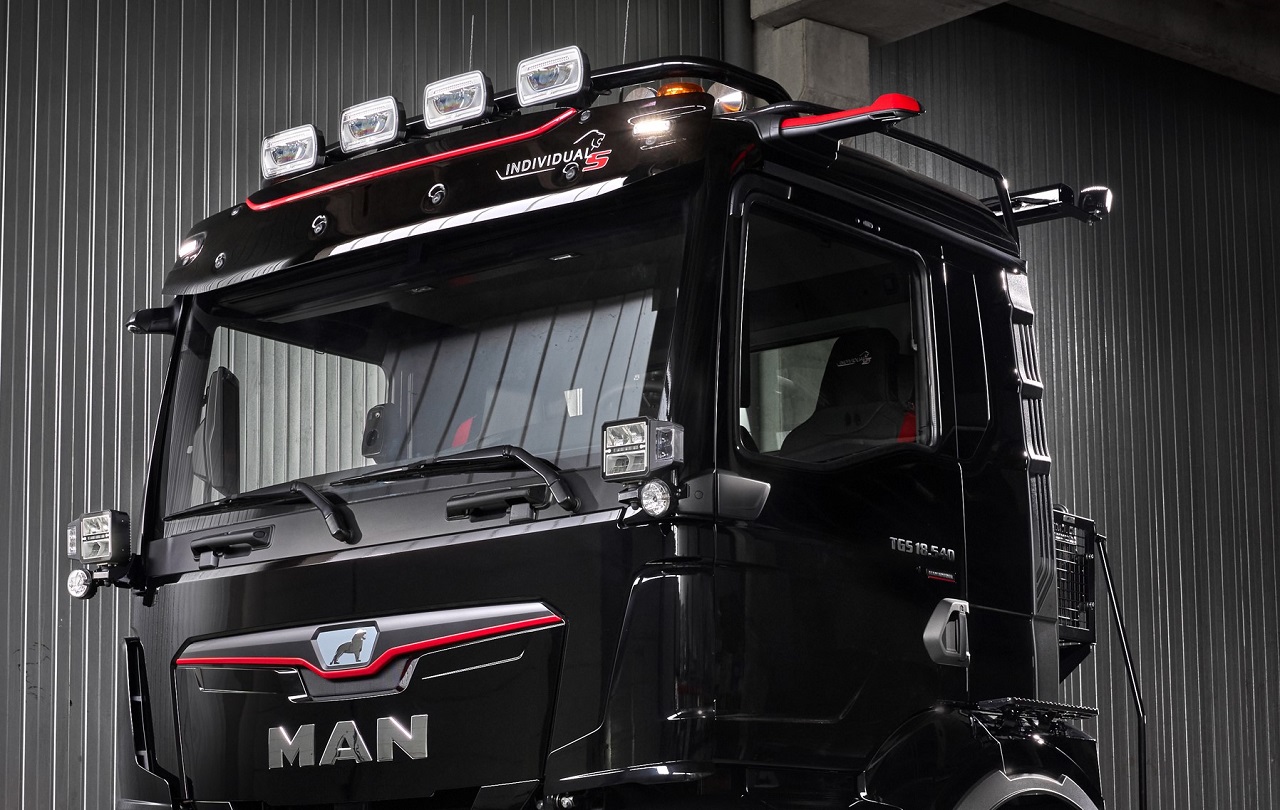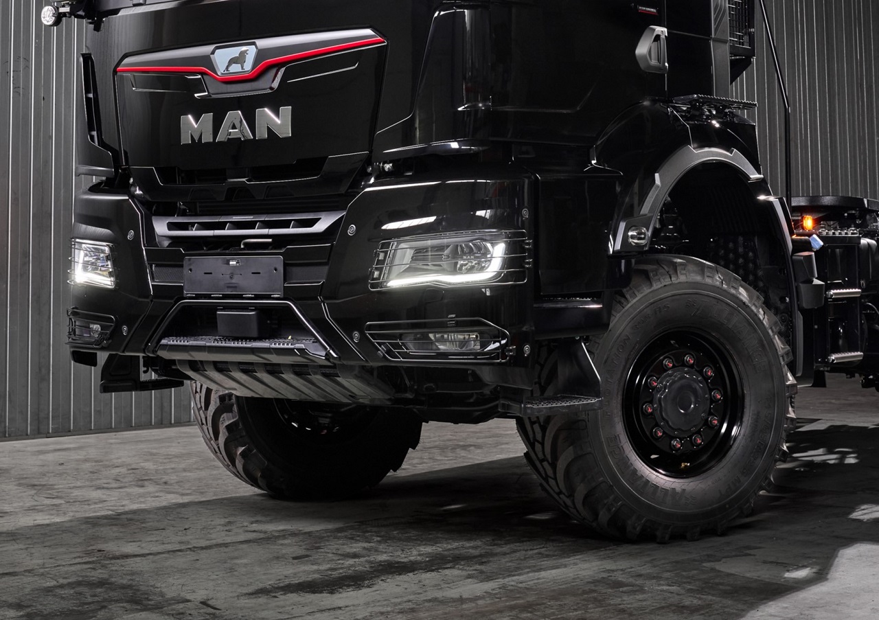 Тягач також оснащений пакетом MAN TGS Individual Lion S, який крім світлодіодних фар дальнього світла включає карбонові вставки та яскраво-червоні елементи, які надають машині оригінального вигляду.