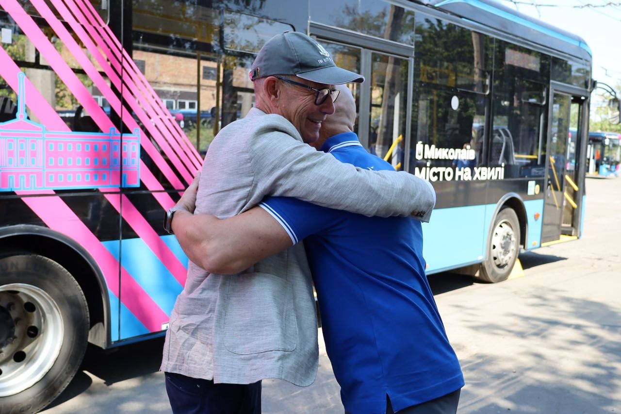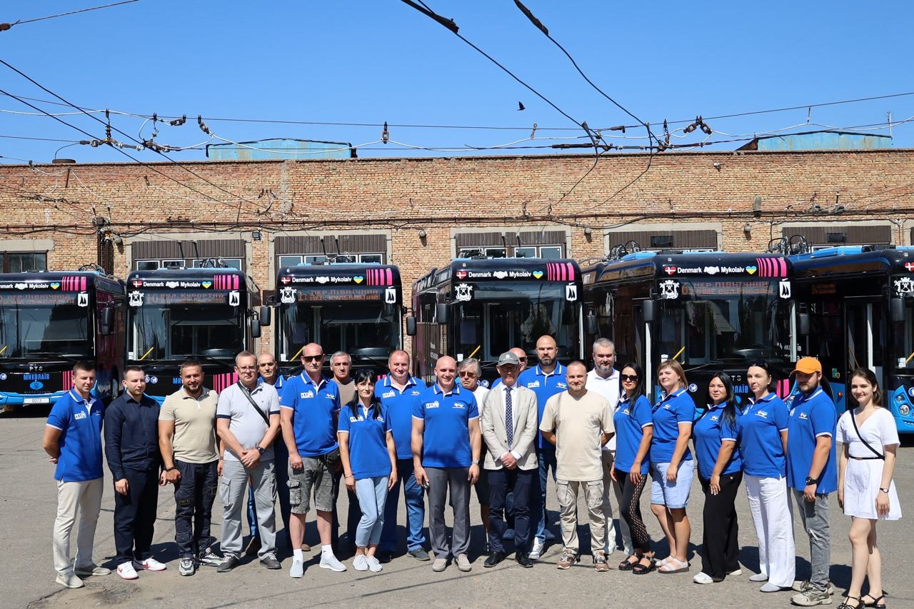 На території комунального підприємства «Миколаївелектротранс» днями відбулася передача дев’яти новеньких тролейбусів, закуплених за сприяння Європейського банку реконструкції та розвитку й за фінансової підтримки уряду Данії. Загалом Данія допомогла придбати Миколаєву вже 18 тролейбусів. Про це повідомив мер Миколаєва Олександр Сенкевич. На передачі тролейбусів був присутній Надзвичайний та Повноважний Посол Королівства Данія в Україні Оле Егберг Міккельсен.