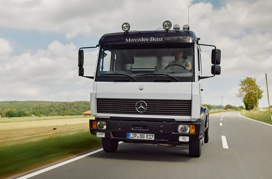 Події з дитинства частенько запам’ятовуються на все життя і буває так хочеться повернути їх знову. Власник транспортної компанії в німецькому місті Детмольд – Олівер Грюттемайер зумів придбати таку ж саму вантажівку Mercedes-Benz LK, як й у його батька свого часу. Якось хлопченям він провів в такій машині ціле літо, колесивши по різних містах.