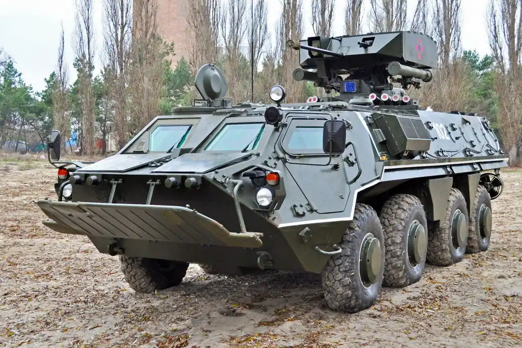 БТР-4Е разработан Харьковским Конструкторским Бюро по Машиностроению (ХКБМ) им. А. А. Морозова. Машина оснащена современным боевым модулем «Гром». Он включает 30-мм автоматическую пушку с боекомплектов 360 снарядов, гранатомет (150 гранат), пулемет 7,62 мм (1200 патронов), а также ПТРК «Конкурс» или «Барьер» - с четырьмя ракетами. Могут устанавливаться и другие боевые модули: «Шквал» и БАУ. Последний отличается наличием спаренной 23-мм автоматической пушки.