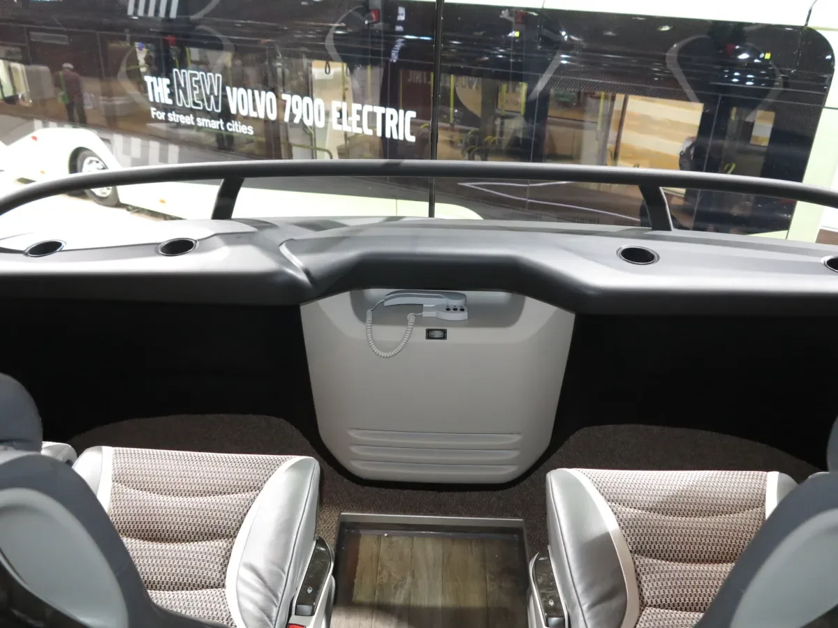 В-четвертых, на автобусе применен модульный принцип компоновки первого этажа. Заказчик может выбирать различные варианты планировки. Можно устанавливать и различные кокпиты в кабине водителя.