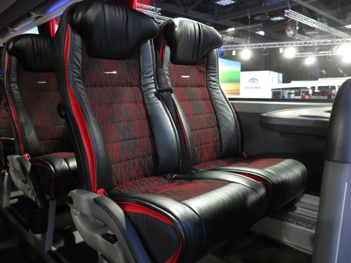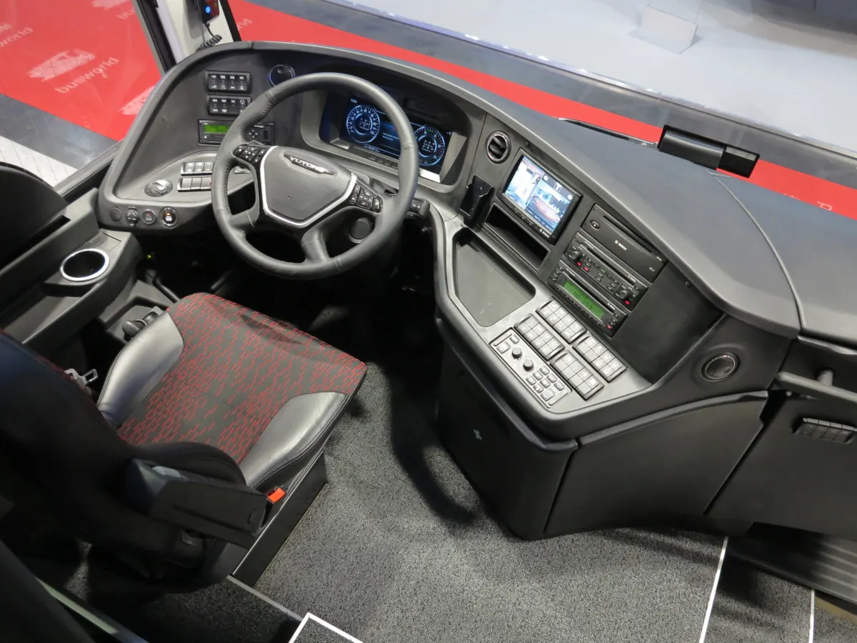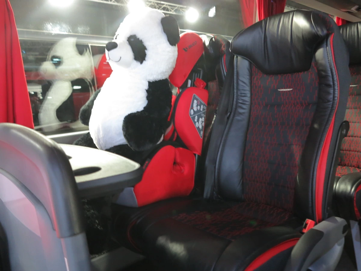 Yutong T12 имеет длину 12,24 м, ширину 2,55 м и высоту 3,81 м. Колесная база – 6,09 м. Салон предлагается с вариантами на 48, 49 или 53 места. К услугам пассажиров – комфортабельные кресла. На одном из них посетители выставки могли обнаружить самого известного медвежонка родом из Китая – панду в виде мягкой игрушки.
