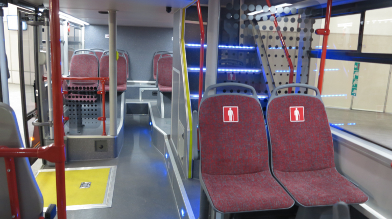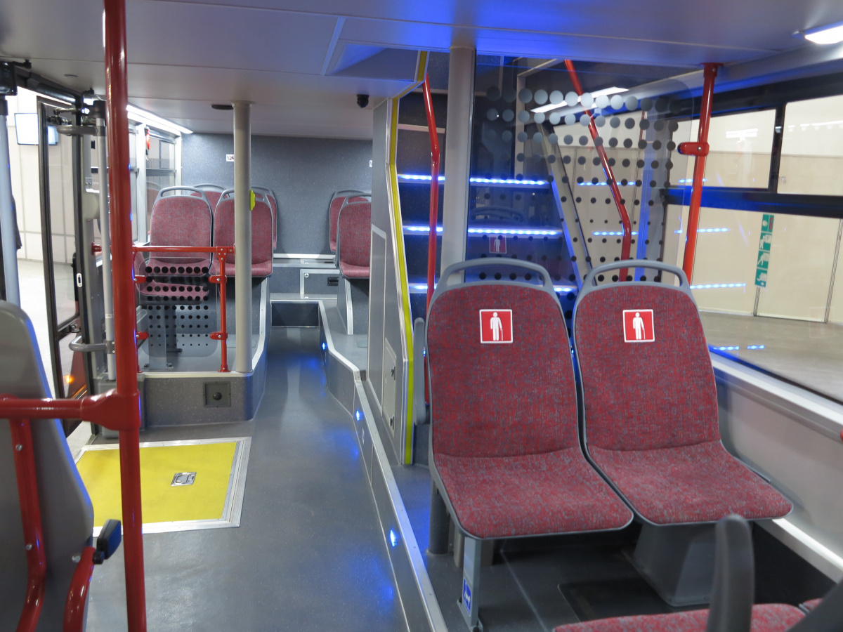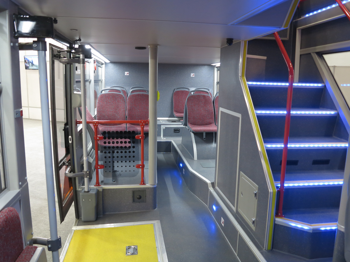 Автобус оснащен пневмоподвеской колес с электронным управлением, с автоматической регулировкой дорожного просвета и функцией приседания на остановках – для облегчения заезда инвалидной коляски по откидной рампе. Нижний этаж оснащен кондиционером. На второй палубе – сиденья с влагозащищенным покрытием, есть раскладная тентованная крыша. Пассажирам доступна система аудио-гида на 8 различных языках.