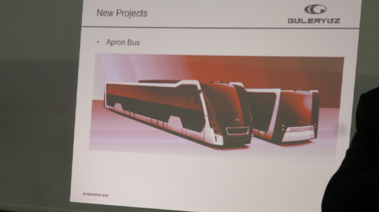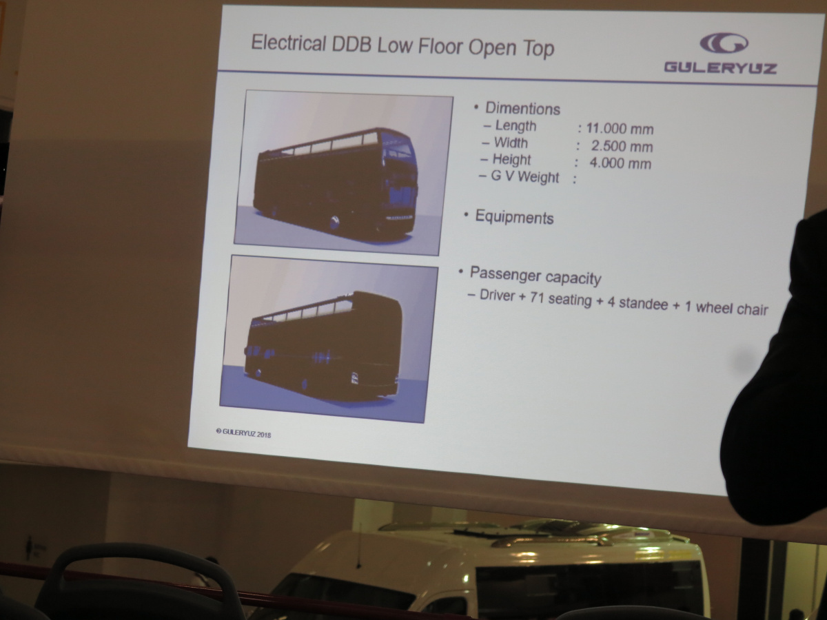 По традиции, пресс-конференция на стенде была проведена в двухэтажном автобусе, на верхней палубе. Как отметил один из топ-менеджеров Gyleryuz Otomotiv A. S. – господин Ali Gingeoglu, компания готовит два электробуса для города – двухэтажный и обычный низкопольный, а также перронный автобус для аэропортов – Apron Bus. Ожидается, что новинки будут презентованы осенью нынешнего года на Салоне коммерческих автомобилей IAA 2018 в Ганновере.