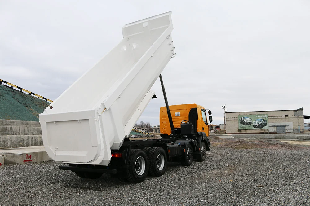 Важное преимущество КрАЗ-7133С4 (8х4) – бескапотная компоновка, что улучшает маневренность. Автомобиль оснащен кабиной от грузовика Renault Kerax. Здесь модерная приборная панель, комфортабельные кресла, есть и спальная полка. ПАО «АвтоКрАЗ» надеется, что представленный на выставке самосвал 7133С4 (8х4) найдет спрос у отечественных горнодобывающих предприятий.