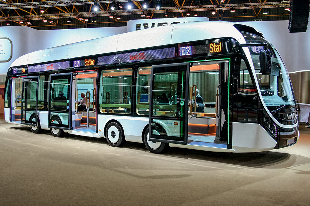 Iveco. Компания Iveco презентовала 4-осный концептуальный электробус Ellisup (cм. фото в заголовке). У него непропорционально маленькие колеса, а округлый кузов отличается значительной площадью остекления и унифицированными носовой и задней частями. Ellisup разработан совместно с французскими транспортниками. Электромотор для машины, передающий крутящий момент на четыре из восьми колес, предоставила компания Michelin. Его питают аккумуляторы, совмещенные с суперконденсаторами, что позволяет обеспечить повышенную емкость и быструю зарядку. Салон – оригинальный, с широким применением натурального дерева и эффектной подсветки.
