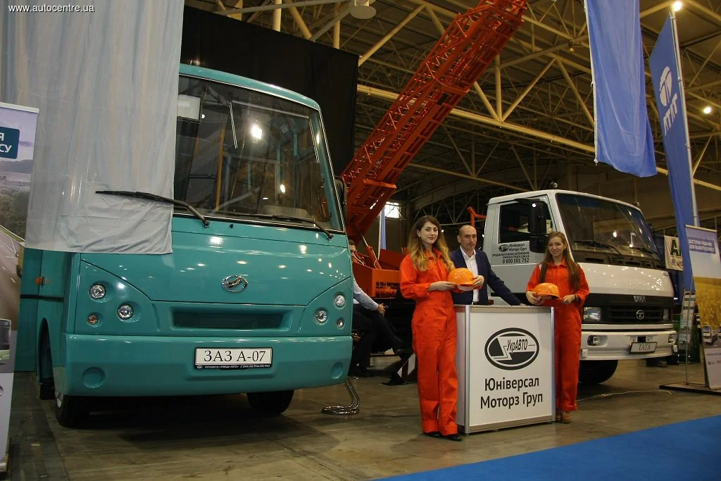 На стенде «Юниверсал Моторз Групп» можно увидеть автобус I-VAN в пригородной версии А07А1-404. Салон рассчитан на перевозку до 39 пассажиров, мест для сидения – 25 (все кресла – с ремнями безопасности). Общая длина составляет 7,4 м, ширина – 2,24 м и высота – 2,92 м. Снаряженная масса – 4850 кг, а полная – 7700 кг.