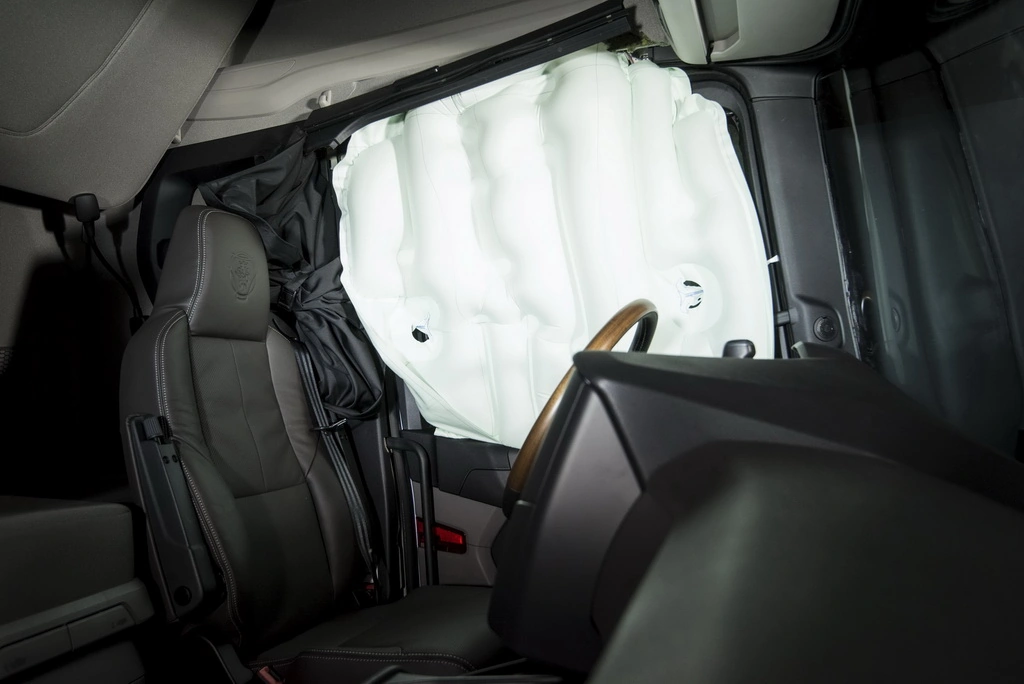 Бічні надувні подушки безпеки сьогодні активно використовуються на легкових автомобілях. Компанія Scania вирішила першою у світі встановити side airbag і на вантажівки важкого класу. Як відомо, перекидання багатотонної машини, як правило, приводить до тяжких наслідків. На кабіну автомобіля діє величезна сила. Крім того, існує вірогідність ушкодження її напівпричепом.