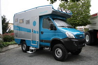 Недавно появившейся полноприводный грузовик IVECO Daily 4×4 нового поколения – идеально подходит для новой «автодачи» модели EX 345. Полный привод, блокируемые межосевой и задний межколесный дифференциалы, большой клиренс благодаря «зубастым» шинам увеличенного диаметра, колесные редукторы… К этому нужно добавить мощный, 170-сильнйы турбодизель и 24-ступенчатую коробку передач, с 4-мя передачами заднего хода.