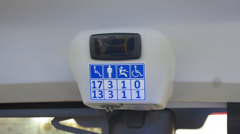 Так, один автобус имел центральную двустворчатую дверь, за которой находился компактный гидродифт для коляски. Накопительная площадка в машине в средней части. При этом сохранена вторая распашная дверь возле водителя, где находится одно пассажирское место.
