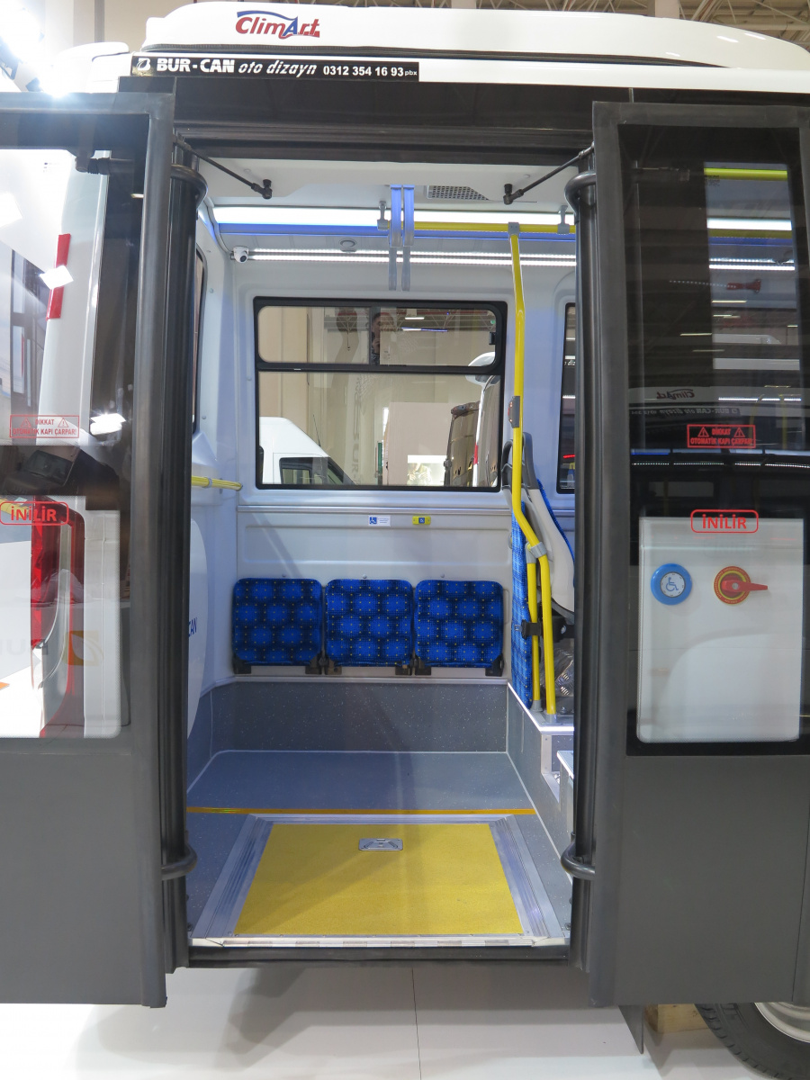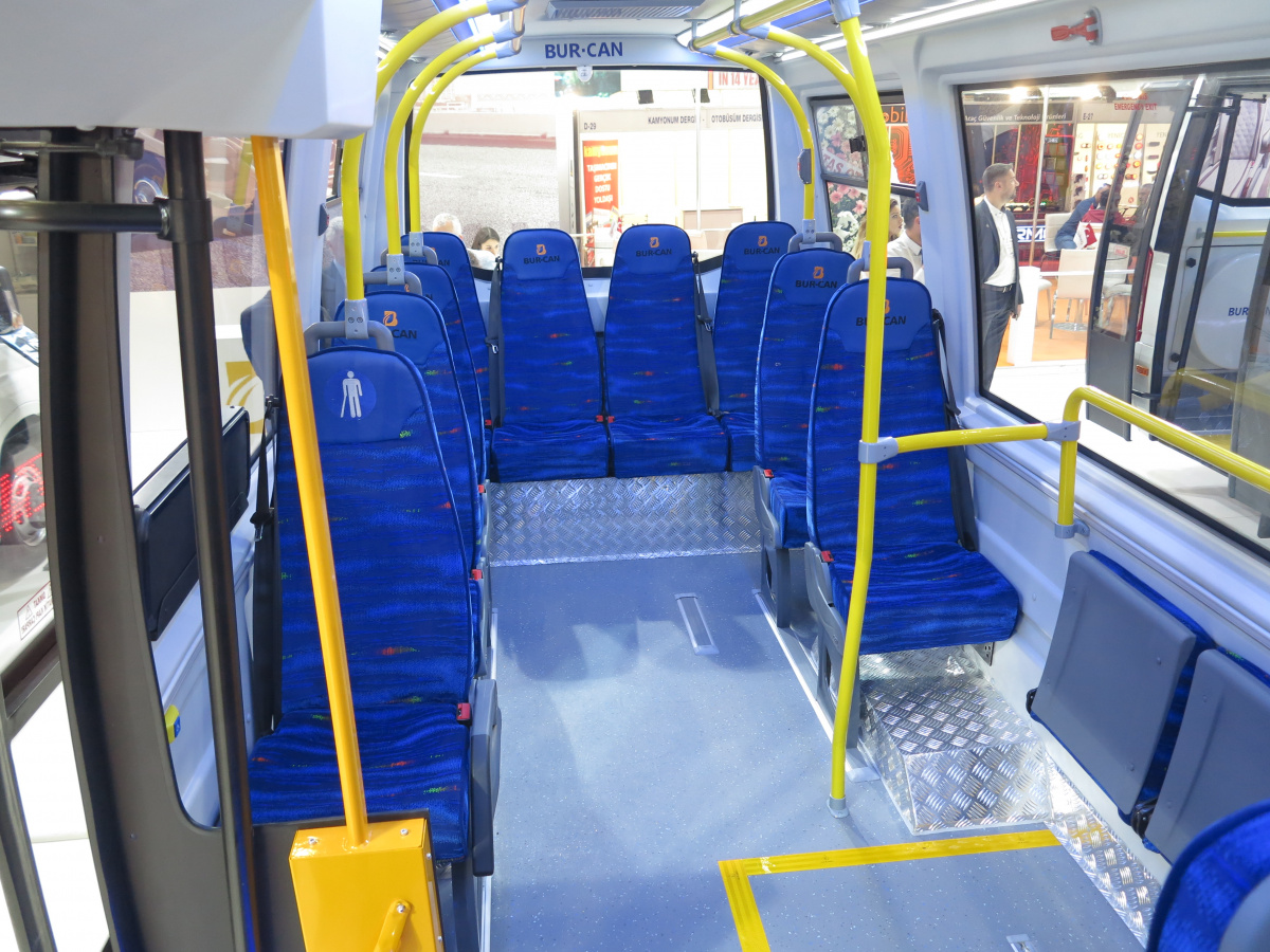 Две представленные модели от Bur-Can предназначены для города. Каждая из них вмещает по 20 пассажиров (17 сидячих). Кроме того, предусмотрено место для инвалидной коляски. Главное отличие двух машин – в планировке салоне.