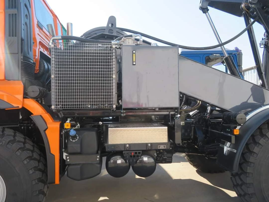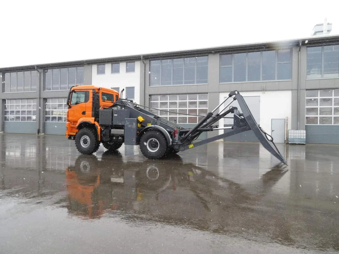 На підготовленому для позашляхової експлуатації повноприводному шасі моделі MAN TGS 18.510 4х4 було встановлено потужний відвал, що приводиться в дію гідравлікою. За ним змонтована гігантська лебідка з надміцним тросом. Це обладнання встановила ще одна німецька компанія — Frank Fockersperger, коником якої є створення землерийної техніки.