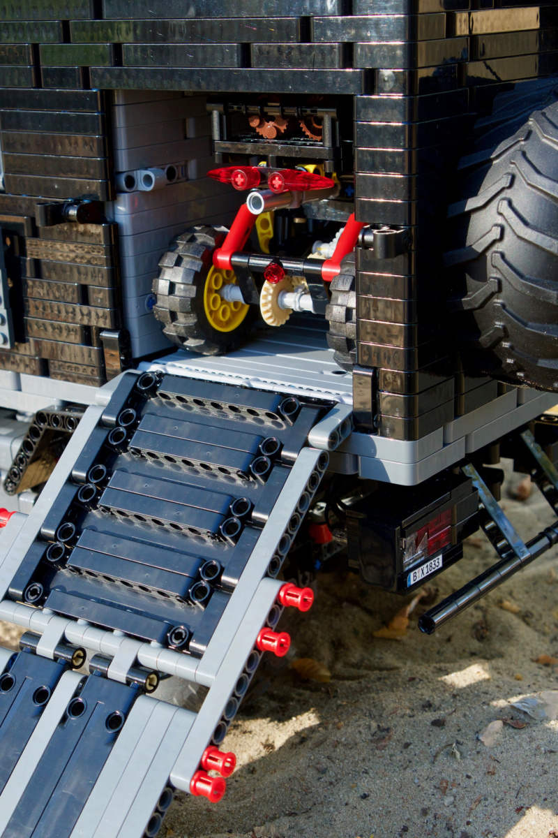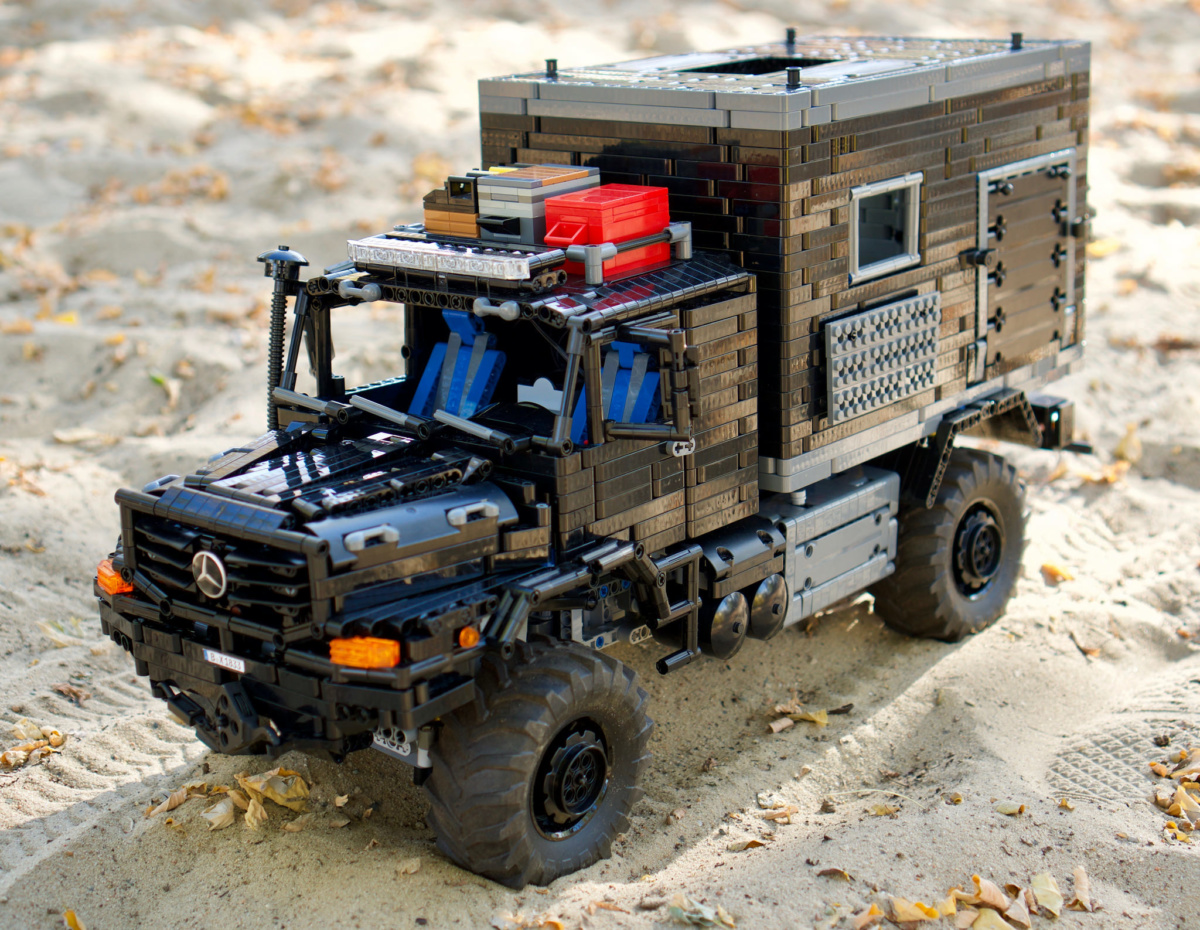 Дело в том, что этот кемпер на базе внедорожного шасси Mercedes-Benz Zetros 1833 является масштабной моделью и собран из конструктора Lego Technic. Точну такую машину нельзя купить – она собрана из комплекта деталей по специальной инструкции.