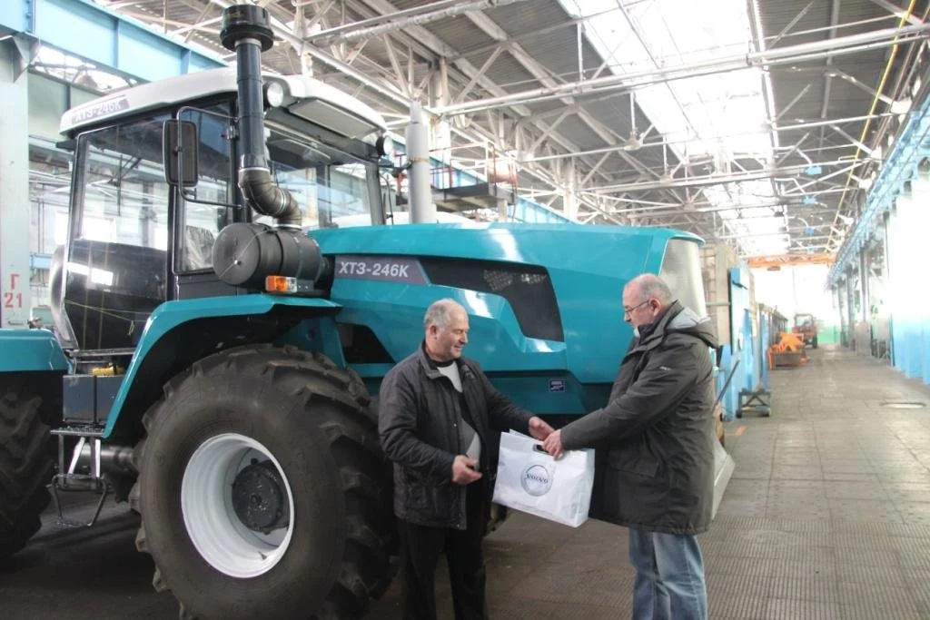Технический директор – Вадим Аносов передал первенца, с двигателем Volvo мощностью 240 л.с., в ООО «Агрофирма «Репина». Трактор принимал лично директор хозяйства - Горлачев Сергей Анатольевич. Он также получил ценный подарок из рук представителя шведского завода, поставившего двигатель харьковским тракторостроителям.