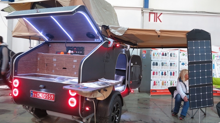 На стенді LifeStyleCamper відбулася прем’єра нової позашляхової моделі кемпера Teardrop. Він трохи вищий за попередника, а його елегантний кузов має полімерне захисне покриття Line-X. Отже, подряпини й відколи йому не страшні. Міцна торсіонна вісь відомого німецького виробника AL-KO чудово справляється з пересіченою місцевістю і водночас забезпечує належну плавність ходу.