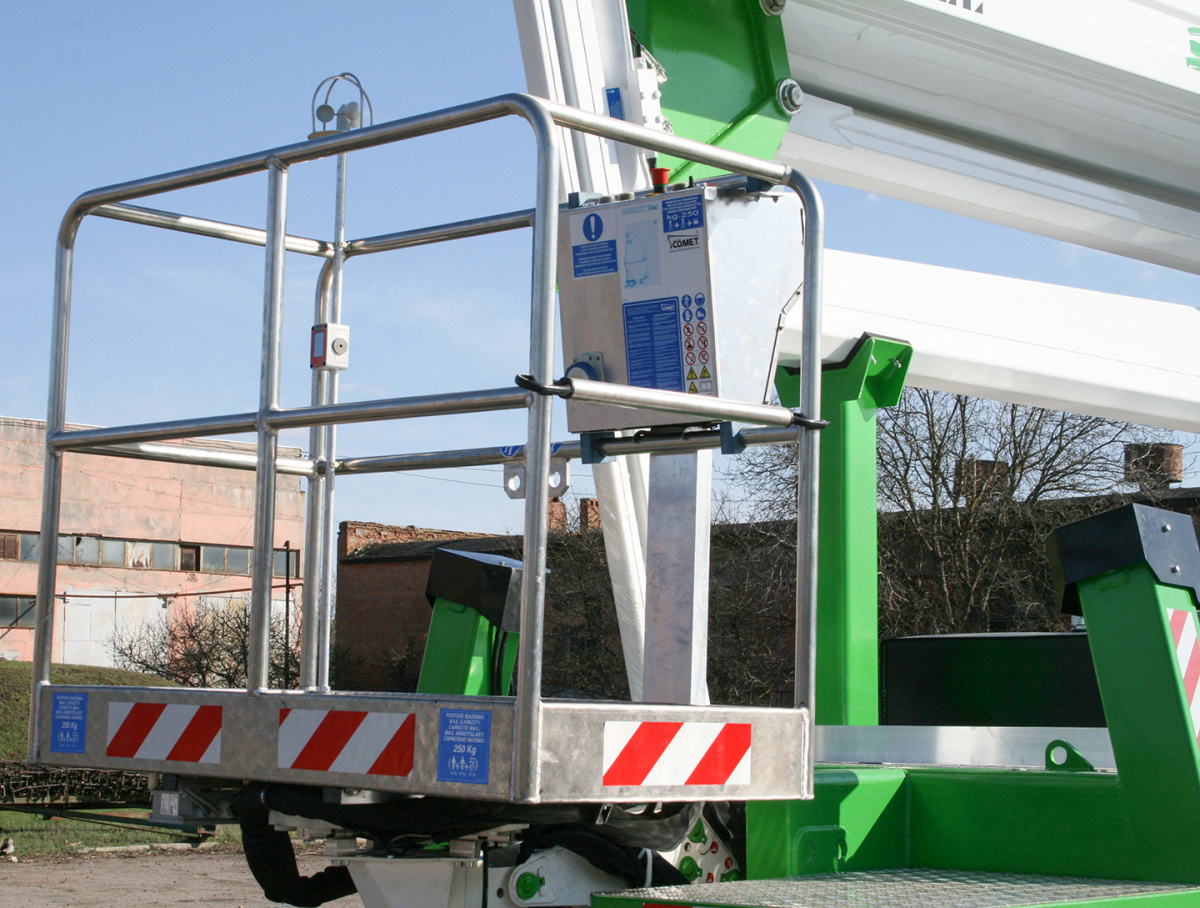 Автовышка обладает различными средствами безопасности. Это ограничители предельного груза и рабочей зоны, системами блокировки подъема опор (при поднятой стреле), блокировки подъема стрелы (если не выставлены опоры). Есть также аварийная кнопка, которая выключает двигатель как с рабочего места машиниста, так и непосредственно в люльке.