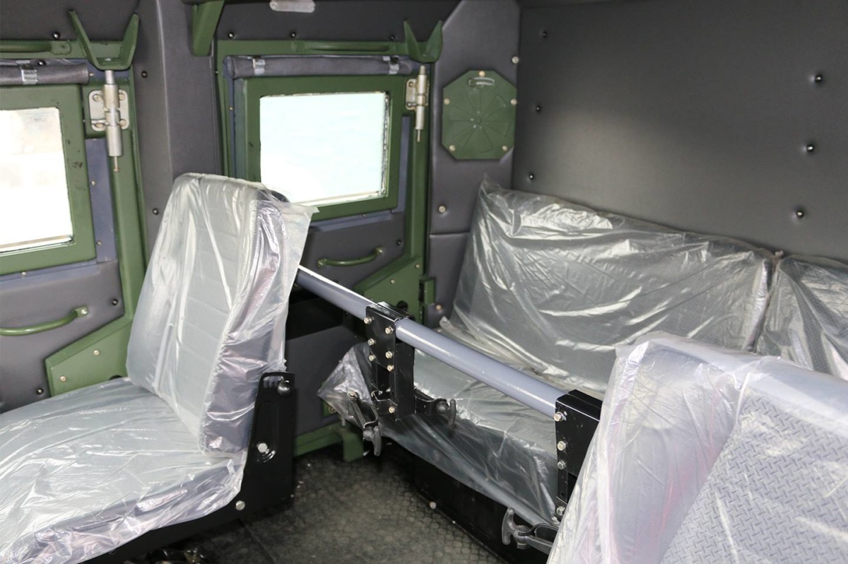 В интерьере предусмотрено место для дополнительного оборудования: приборов наблюдения и ночного видения, приборов радиационной и химической разведки и контроля, радиостанции, предметов индивидуальной защиты. В кабине также размещается боекомплект (по числу мест в кабине).