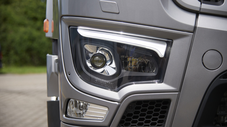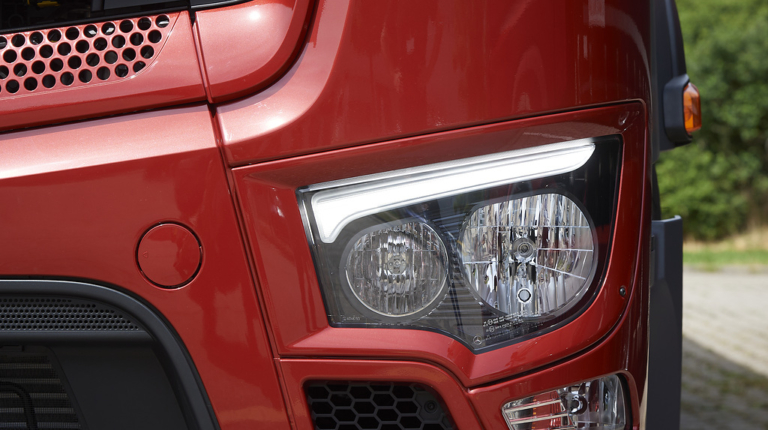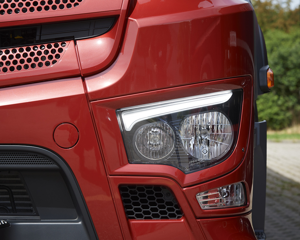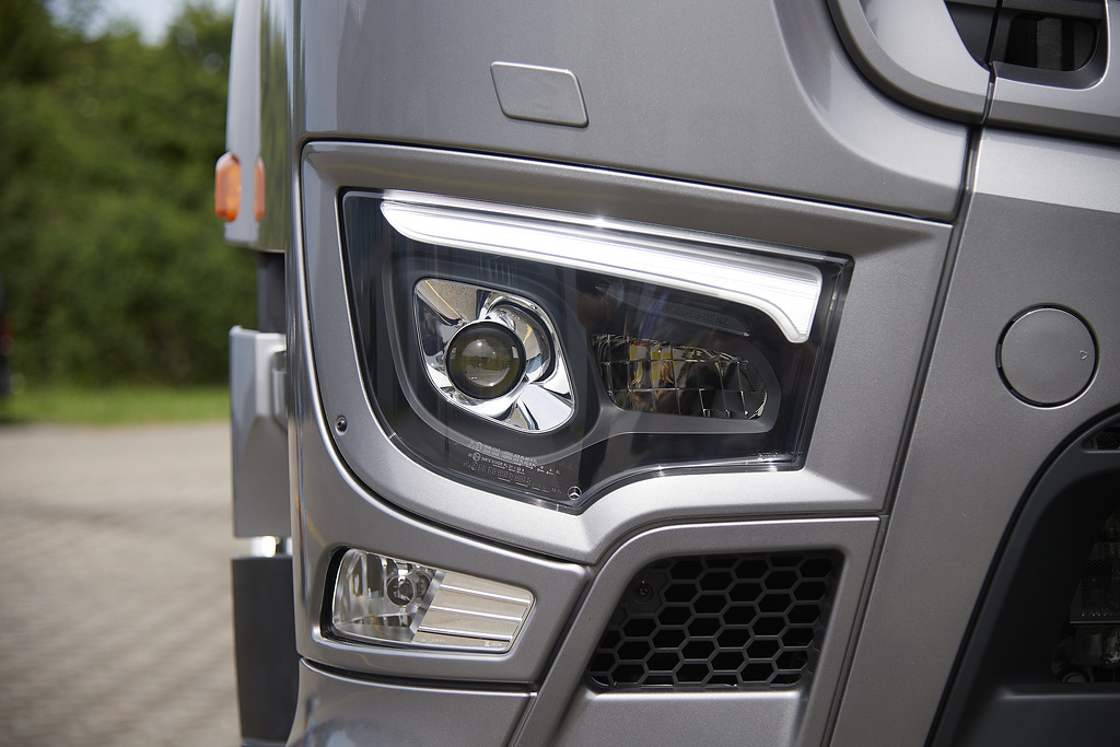 А для моделей Actros і Arocs підготовлені нові фари головного світла з LED “віями”, а як опція стане доступна і повністю світлодіодна оптика.