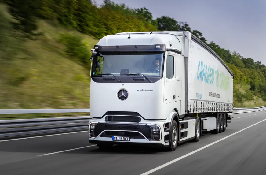 Сьогодні, 10 жовтня відбулася світова прем’єра електричного магістрального тягача Mercedes-Benz eActros 600. Машина отримала літій-залізо-фосфатні (LFP) батареї ємністю 621 кВт.год (три блоки по 207 кВт.год), які забезпечують запас ходу у складі 44- тонного автопоїзда до 500 км. З урахуванням проміжної зарядки під час обов’язкової 45-хвилинної перерви для дотримання режиму праці та відпочинку водія щоденний пробіг автопоїзда може досягати 1000 км.