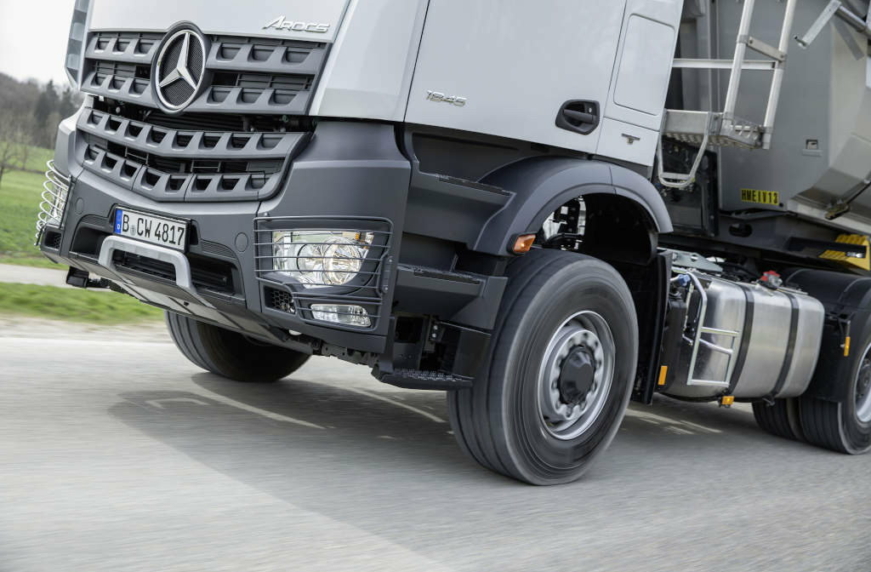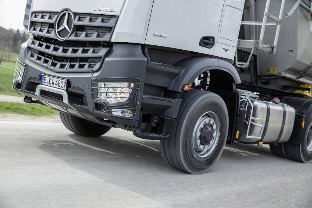 Нужно сказать, что Мercedes-Benz уже не первый производитель тяжелых грузовиков, который внедряет технологию гидромоторов на передних ведущих колесах – HAD (Hydraulic Auxiliary Drive). Первенцем здесь выступила компания MAN, за ней последовали Renault Trucks и Volvo Truck. Преимущества гидропривода перед классическим, механическим налицо. Во-первых, это удобство и простота включения – достаточно нажать кнопку на передней панели. Во-вторых, это отсутствие расходов на обслуживания. В-третьих, это почти вдове меньший вес, что немаловажно на пересеченной местности: так двухосный грузовик Arocs с гидроприводом почти на 525 кг легче своего аналога с постоянным полным приводом и весит всего 400 кг.
