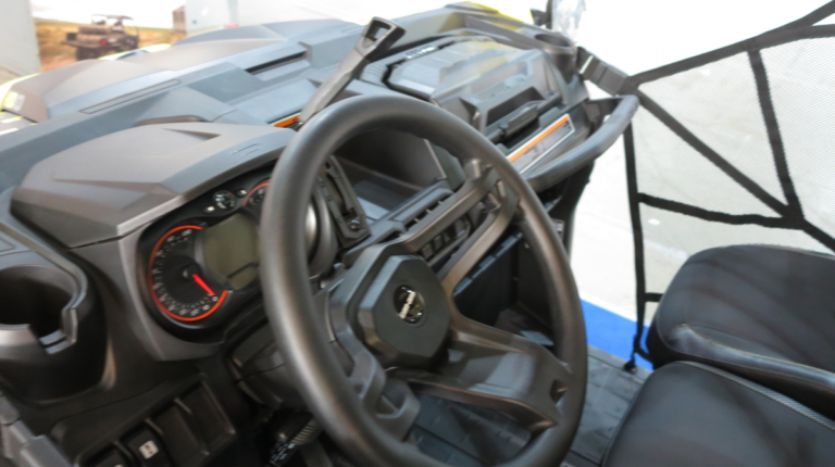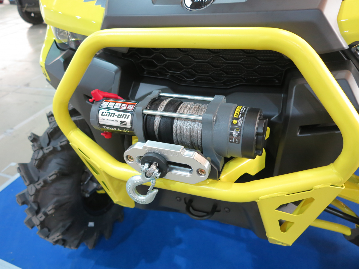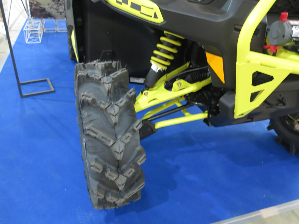 Итак, чем же отличается мотовездеход BRP 2019 года? Итак, увеличился дорожный просвет, установлены более жесткие пружины, появилась блокировка дифференциала на заднем мосту. Также внимание привлекают новые диски. Кроме того в Украине теперь доступен мотовездеход не только в камуфляже, но и в ярко-желтом цвете – как на представленном образце.
