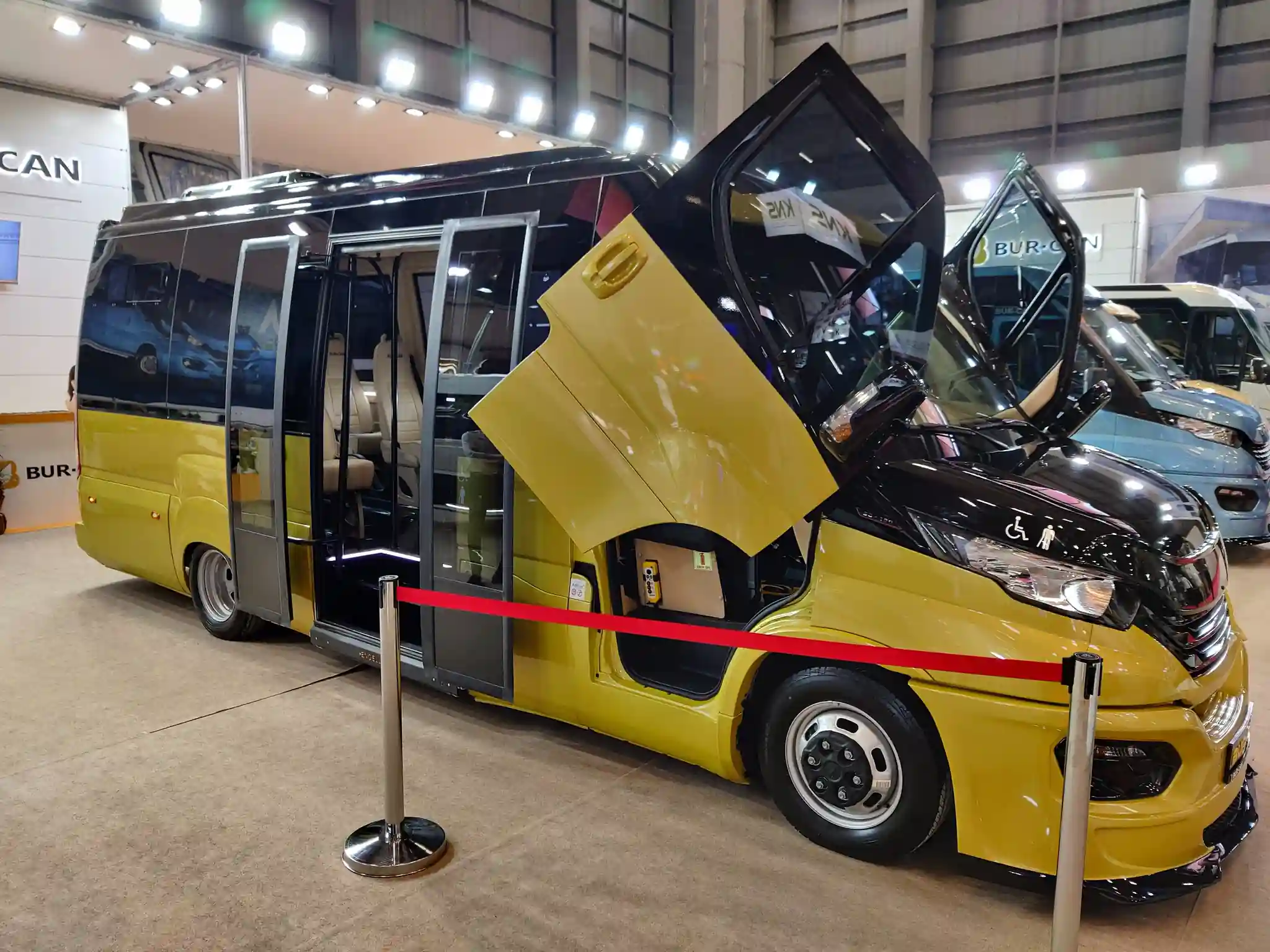 Самым ярким среди них, по крайне мере внешне, можно считать новинку от кузовного ателье Bur-Can, о котором мы уже в свое время писали c турецкого Busworld 2018 года. Так вот, этот микроавтобус, выполненный на традиционном для фирмы шасси – модели IVECO Daily, оснастили передними подъемными дверями, типа крыло бабочки. Прямо, как на суперкаре McLaren F1.
