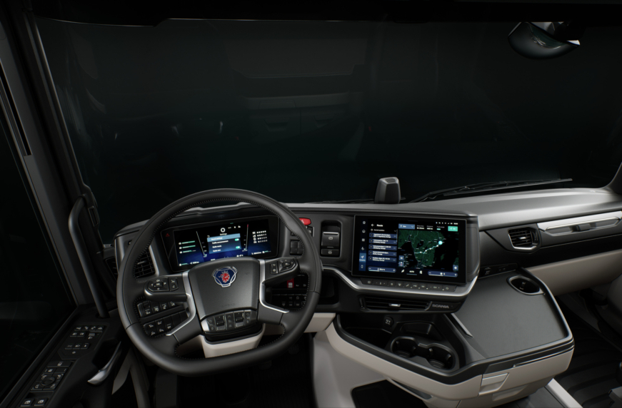 Scania Smart Dash включає цифровий інтерфейс із бездротовим оновленням програмного забезпечення та можливістю підключення до 5G. Водію також доступні фірмові додатки MyScania і Scania Driver.