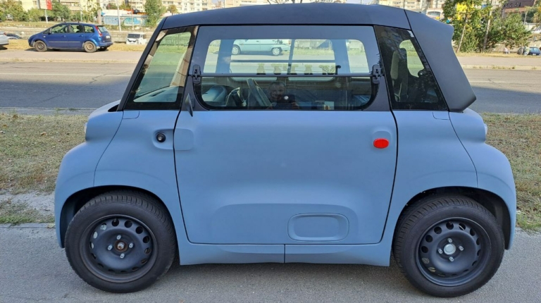 Днями в Києві кореспонденту «Автоцентру» вдалося сфотографувати надкомпактний електромобіль марки Citroen – модель My Ami Cargo. Він має довжину всього 2,41 м, ширину 1,39 м та висоту 1,52 м. Найцікавіше, що це легкий розвізний фургон, що важить всього 485 кг. При цьому машина має досить місткий вантажний відсік, розміщений замість пасажирського сидіння поруч з водієм.