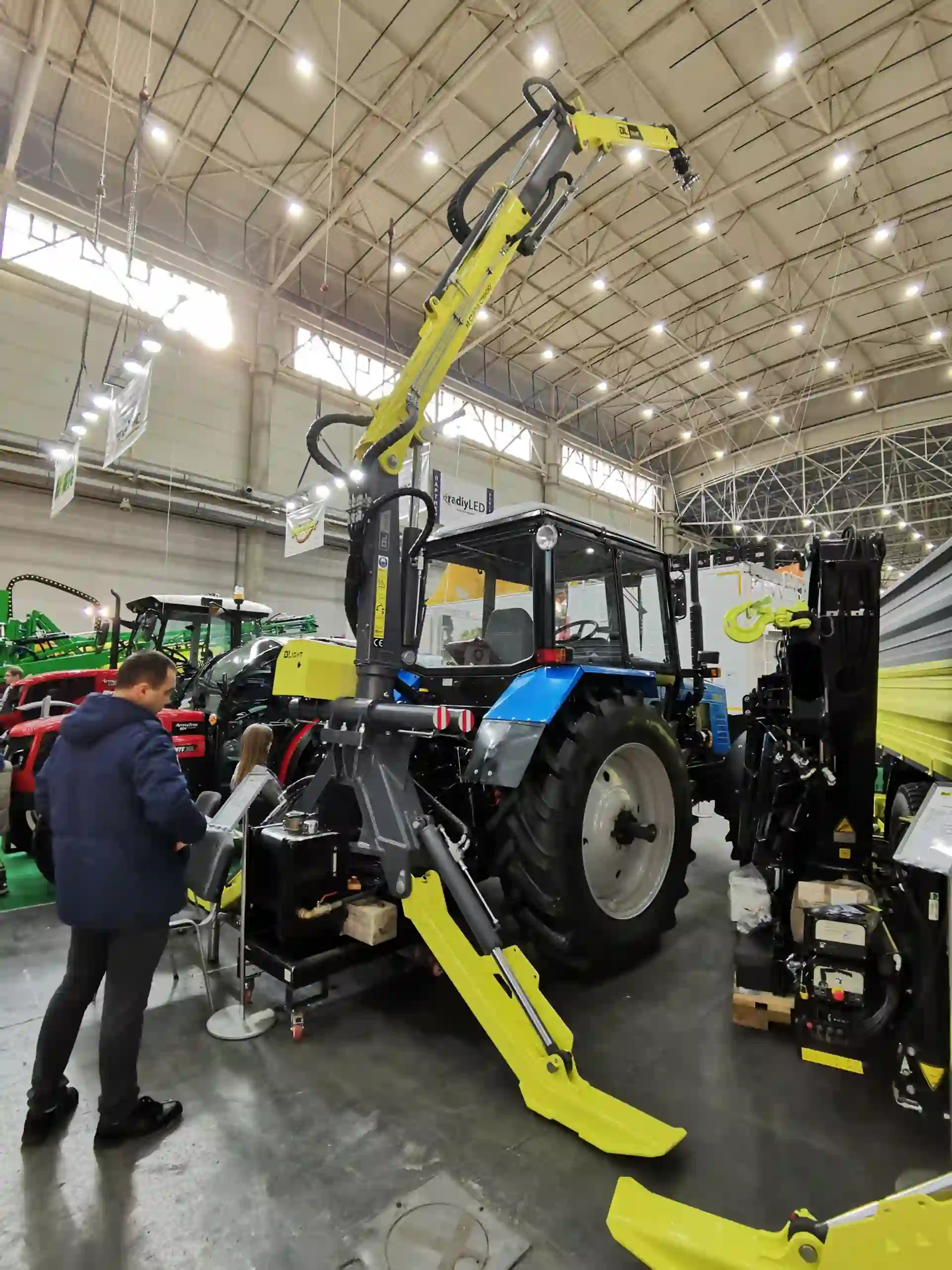 На виставці "Агро Весна 2022" також можна побачити і колісний трактор "Беларус-892.2" від компанії "АВТЕК". Ця машина з вантажопідйомністю задньої навіски 3200 кг і дизелем Д-245.5 потужністю 90 к.с. Демонструється на стенді компанії "Д Лайт". Трактор оснащений маніпулятором DL Smart - з максимальним вильотом стріли 5,5 м і вантажопідйомністю 3000 – 1000 кг (min – max виліт). Висота підйому стріли досягає 8,0 м. Є висувні аутригери. Кут повороту стріли — 370 град.