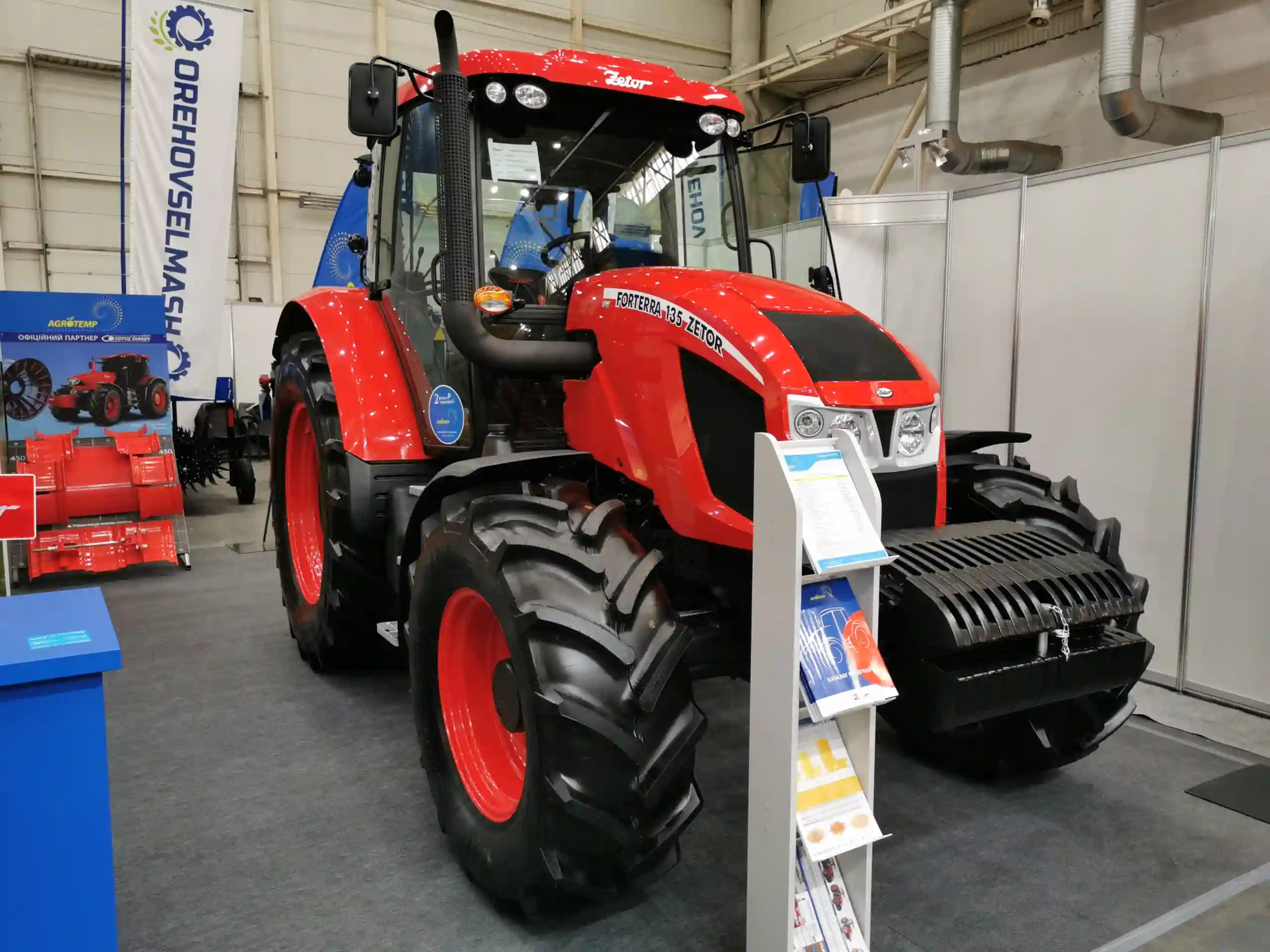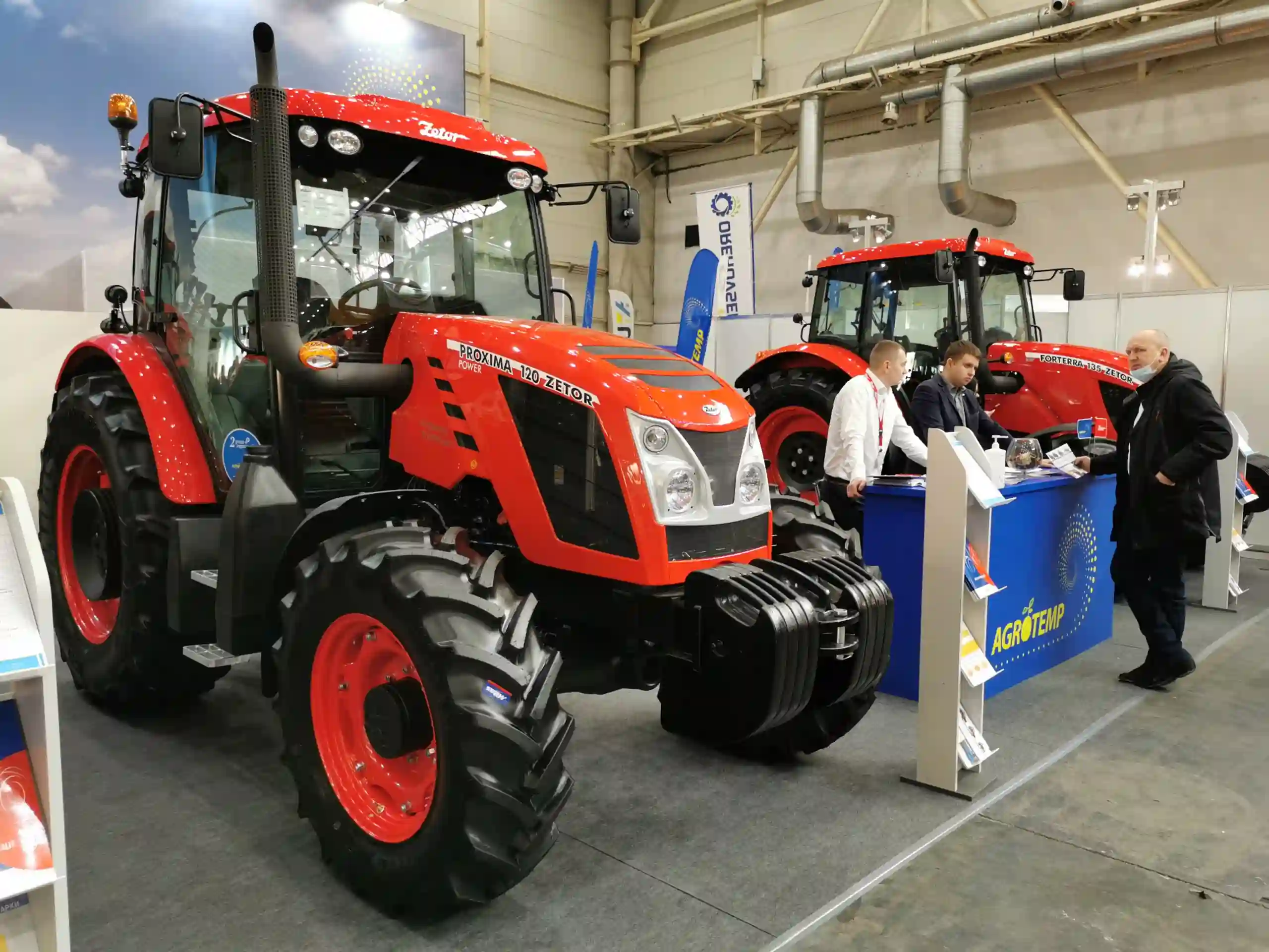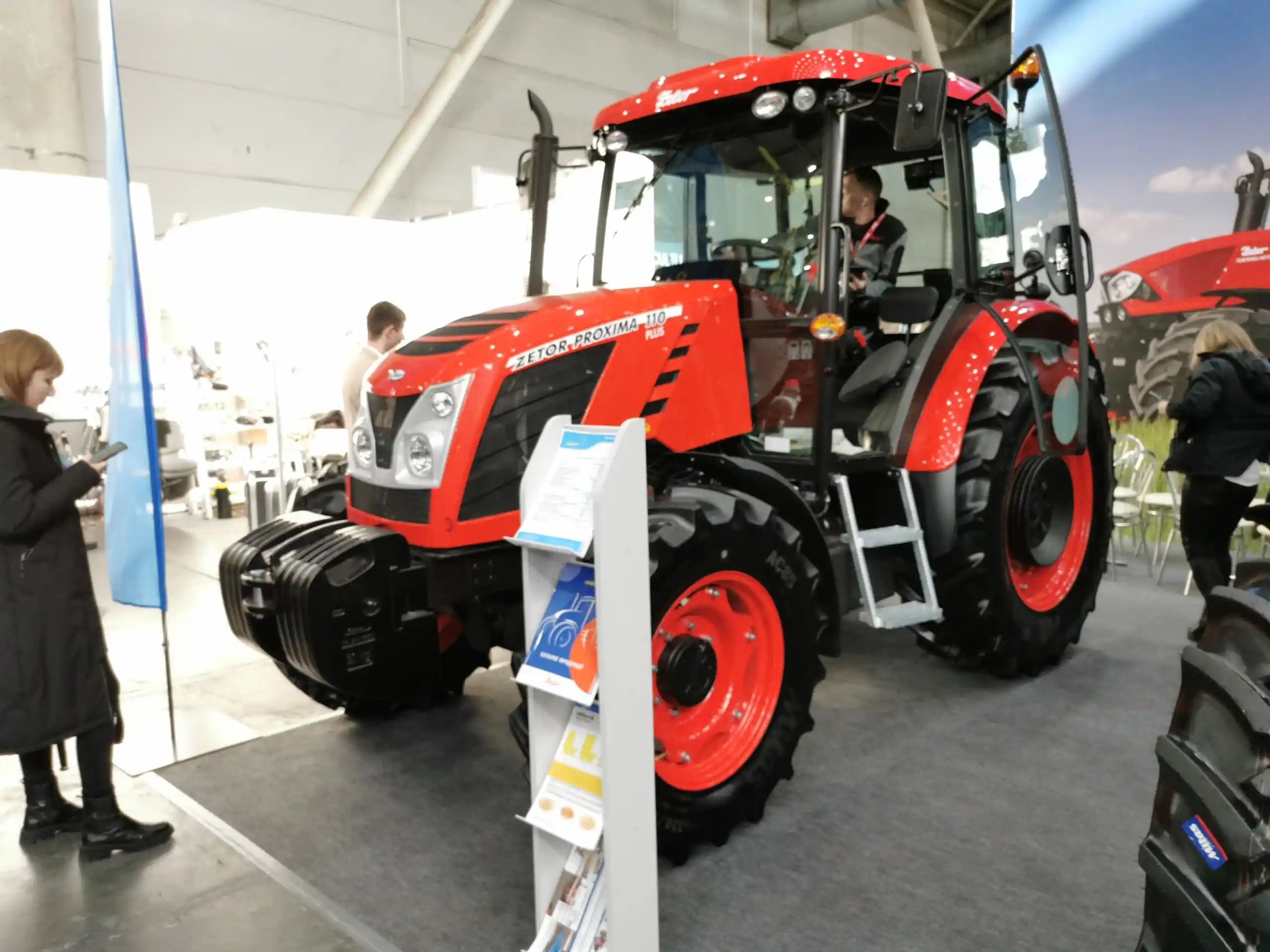А ось компанія "Агро-Темп" привезла на виставку цілу лінійку колісних тракторів чеської марки Zetor. На її стенді демонструються три моделі. Це Proxima Plus 110 потужністю 107 к.с. (450 Нм), з максимальним підйомним зусиллям задньої навіски 42 Нм.