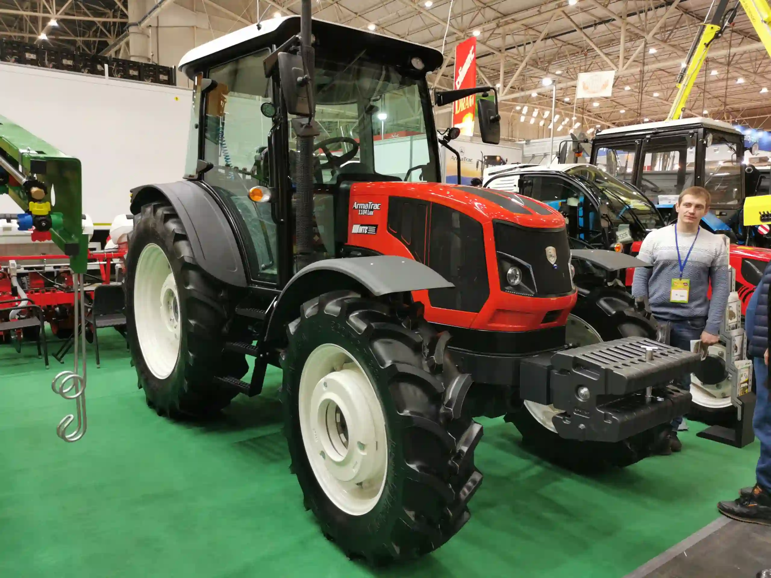 Не можна не згадати і трактори від турецького виробника ArmaTrac. Так, на стенді компанії «МТС» експонуються дві моделі. Це 1104 Lux із вантажопідйомністю задньої навіски 5000 кг і 4,4-літровим двигуном Perkins в 110 к.с. (416 Нм). Трансмісія Powershift Hi-Lo ZF T-557L — з 16-ма передачами вперед і 16-ма назад.