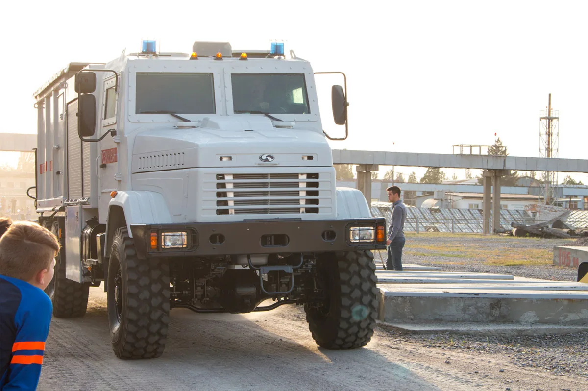 Что же касается новинок автомобильной техники, то на выставке впервые широкой публике был показан новейший пиротехнический автомобиль с бронированной кабиной, впервые засвеченный еще весной 2016 года. Немалый интерес также вызвала различная специальная техника, в том числе коммунальная, созданная совместно с кременчугскими предприятиями: ПАО «Кредмаш» и Крюковским вагонным заводом.