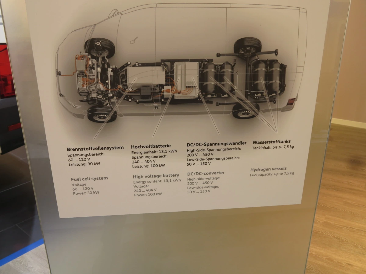 Под полом расположены баллоны для 7,5 кг водорода. В итоге автомобиль с нулевым вредным выхлопом в атмосферу имеет внушительный запас хода – до 500 км. При этом у него больше грузоподъемность, так как применяются компактные литий-ионные батареи на 13,1 кВт.ч.