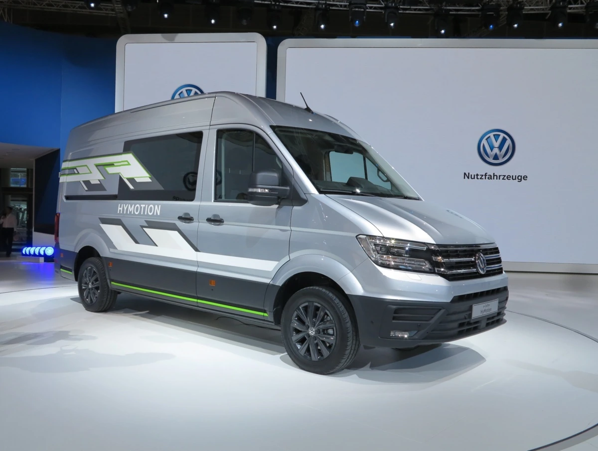 Мировой премьерой также стал развозной фургон на водородных топливных элементах – Crafter HyMotion. Мощность установки fuel cell - 30 кВт. Электромотор мощностью 100 кВт и трансмиссия позаимствована с чисто электрического фургона e-Crafter.